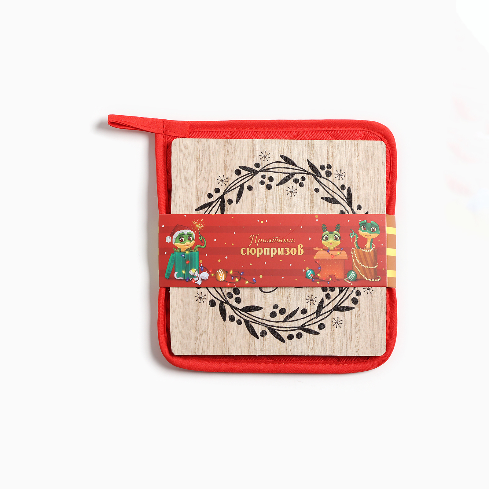 Набор кухонный счастливого нового года: подставка 15 15 см, прихватка 17 17 см