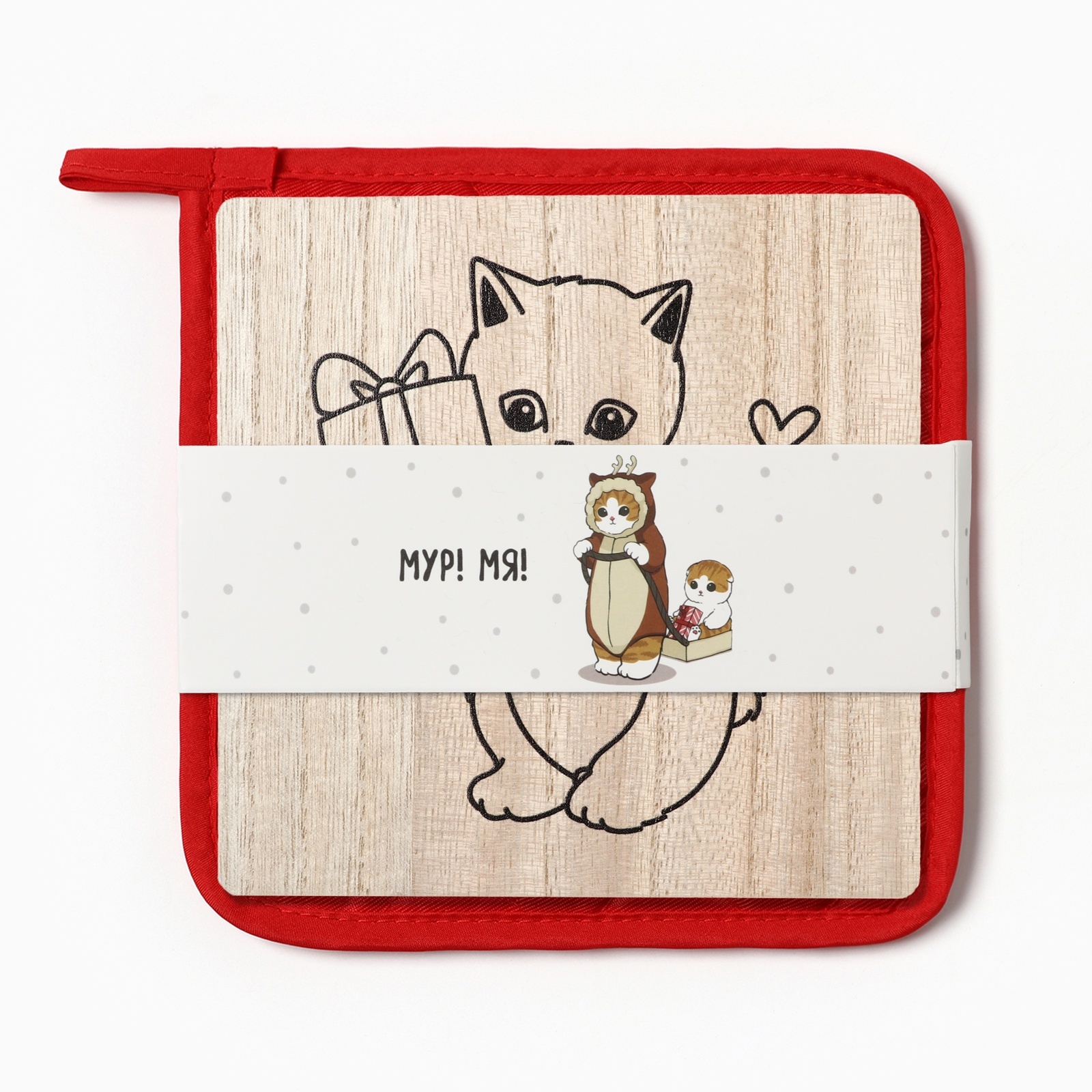 Набор кухонный котик: подставка 15*15 см, прихватка 17*17см
