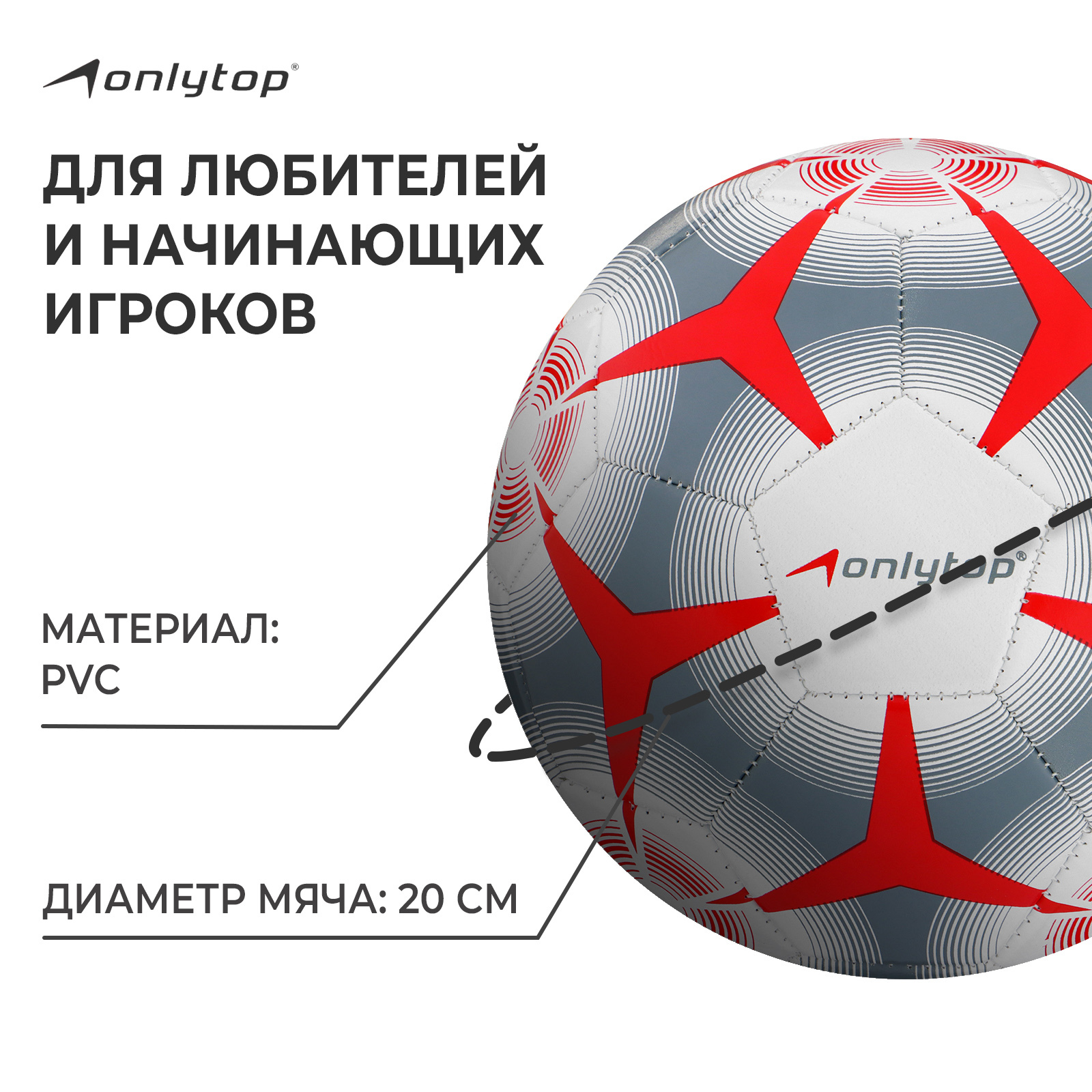 Футбольный мяч Onlytop, машинная сшивка, 32 панели, р. 5, Pvc