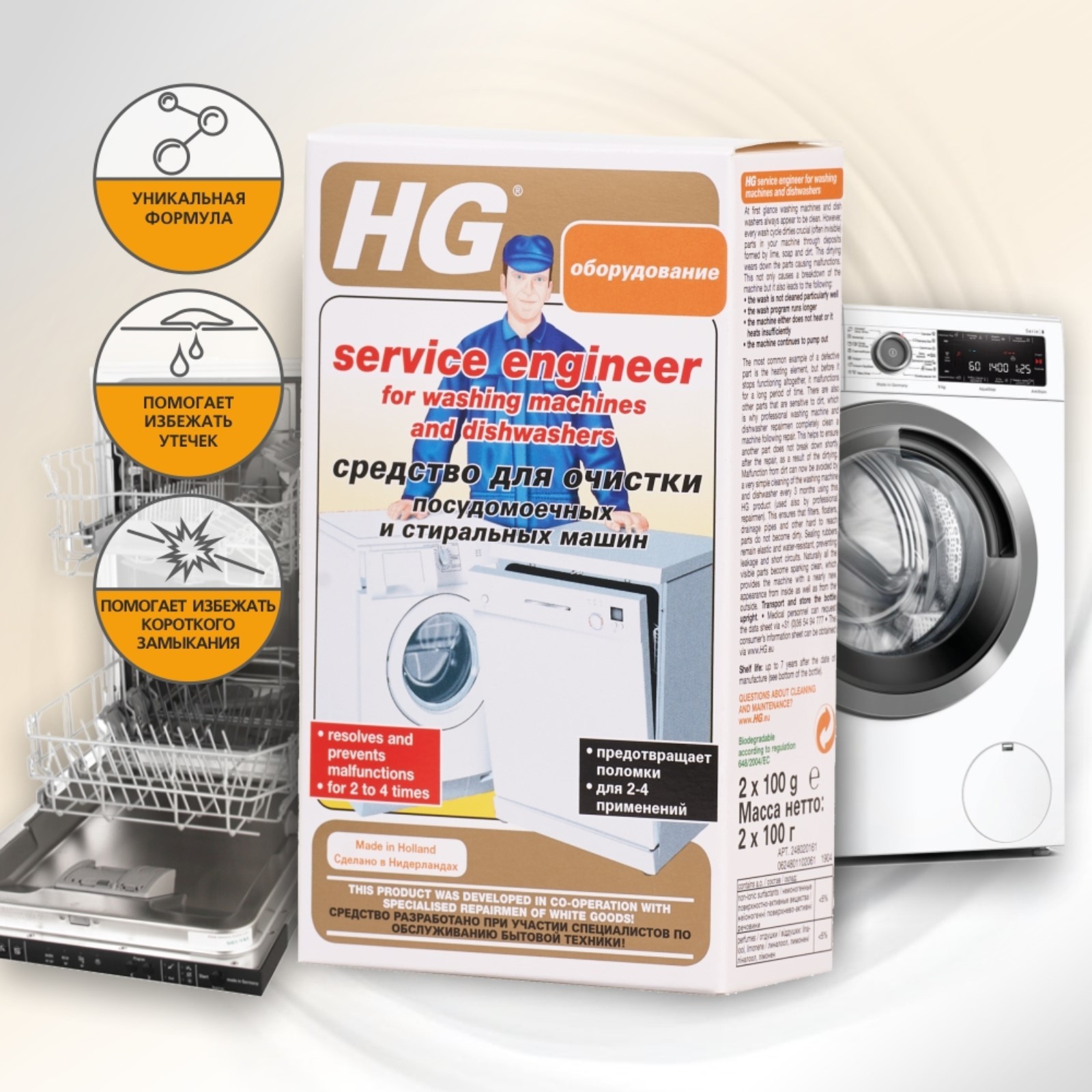 Средство для очистки посудомоечных и стиральных машин Hg, 0.2 кг