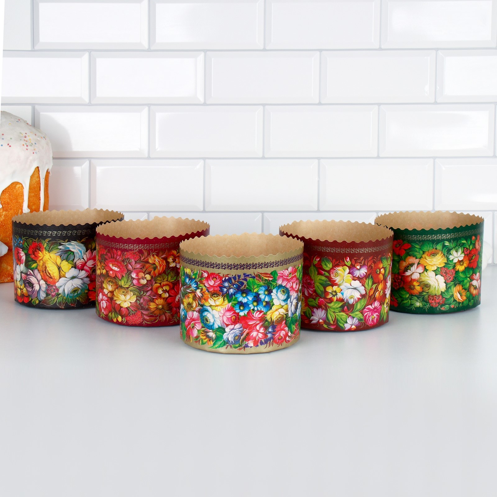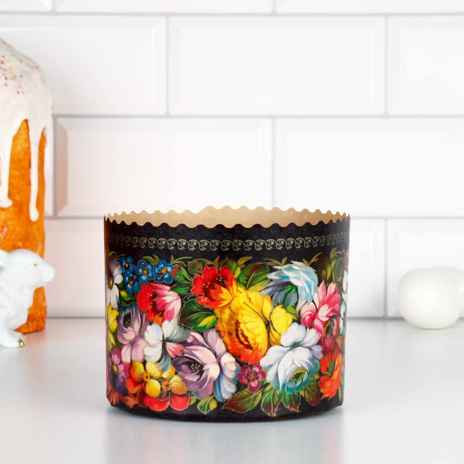 Бумажные формы для кулича "Жостово": Яркая Пасха в стиле народных промыслов!