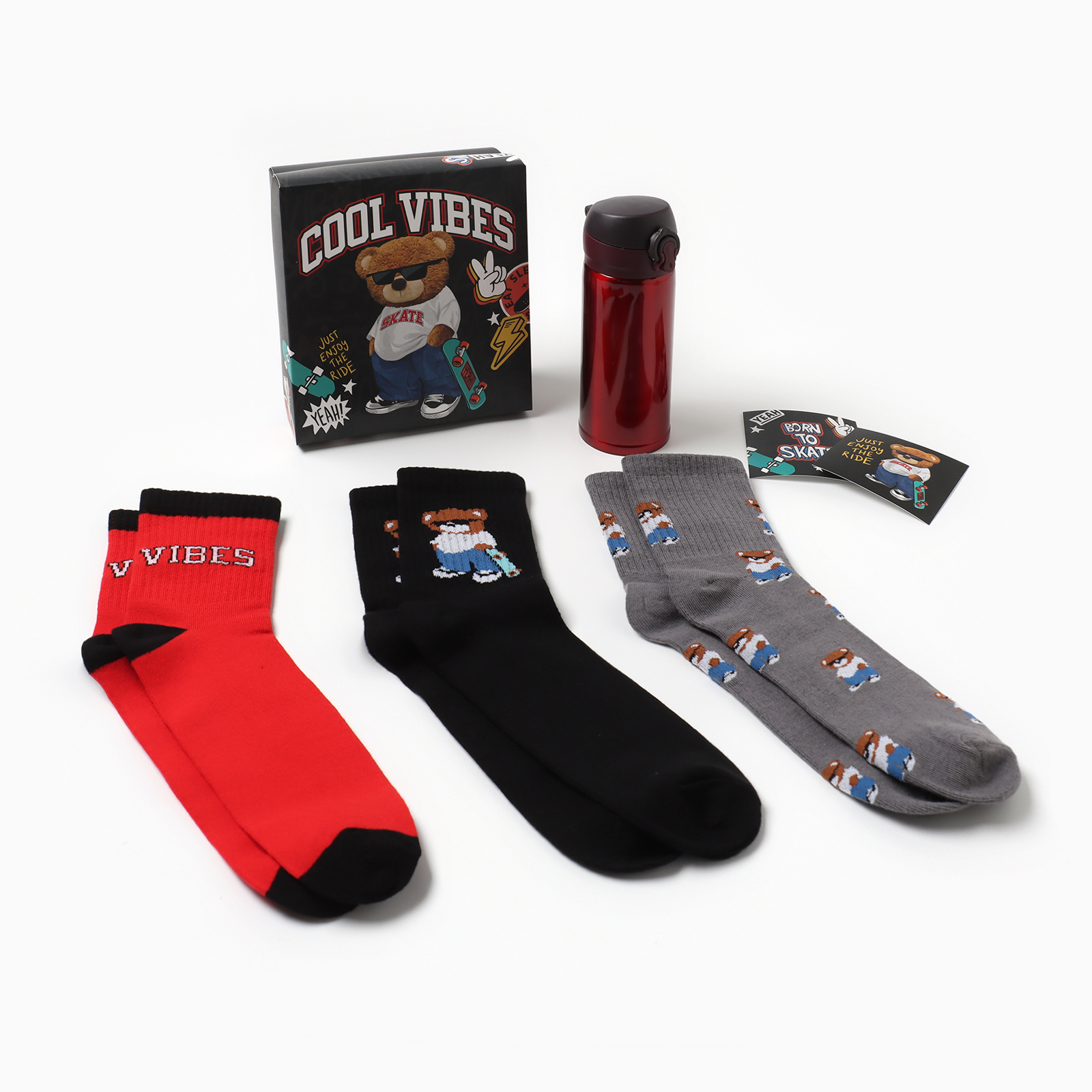 Подарочный набор Kaftan Cool Vibes: термос и носки 3 пары, размер 36-37 (22-24 см)