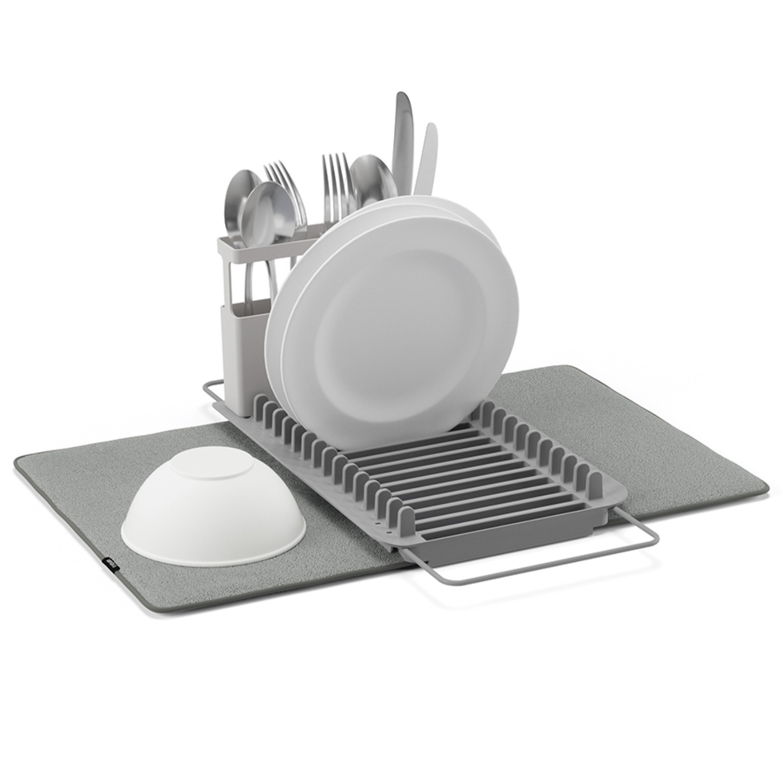 Коврик для сушки посуды с полкой для раковины umbra udry 51х17х57 см, цвет тёмно-серый.