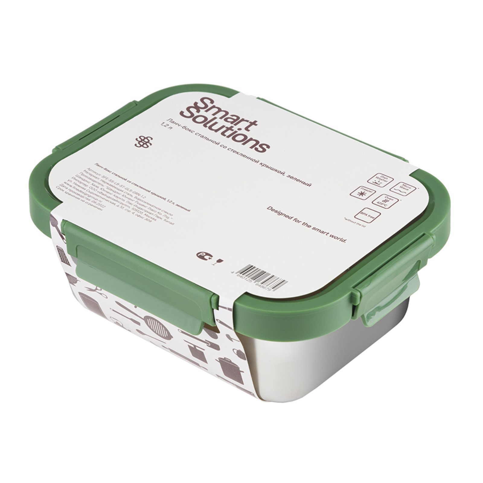 Ланч-бокс Smart Solutions, стеклянная крышка, 1,2 л, цвет зелёный