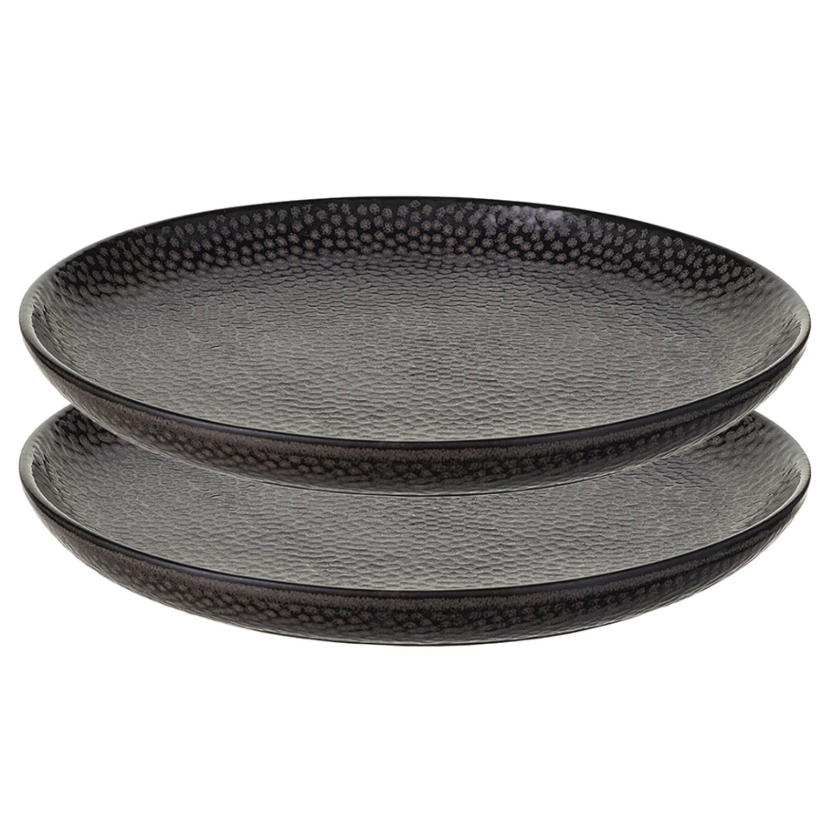 Набор обеденных тарелок liberty jones dots, d=26 см, 2 шт, цвет чёрный. Для создания коллекции Dots с неповторимой фактурой и цветовым решением опытные мастера использовали метод реактивной глазуровки, когда на поверхность посуды наносится несколько слоев специальной глазури. Благодаря такому способу обработки каждое изделие имеет свой неповторимый оттенок и уникальный вид. Обеденные тарелки из коллекции Dots помогут сделать акцент на модной сервировке. Полуматовая глазурь эффектно подчеркивает необычный узор, покрывающий всю поверхность посуды, что придает ей особый шарм. Помимо декоративных свойств такое покрытие обеспечивает дополнительную защиту от внешних воздействий. Изделия из каменной керамики обладают прекрасными эксплуатационными характеристиками. Материал является экологичным, ударопрочным и устойчивым к температурным перепадам. Благодаря этому ёмкости можно ставить в морозильную камеру и использовать для разогрева еды в микроволновой печи. Наши продукты прошли испытания на отсутствие в составе свинца и кадмия в соответствии со стандартными тестами FDA. Материал: каменная керамика. Цвет: чёрный. Посуду рекомендуется очищать от загрязнений в теплой воде с помощью мягкой губки с жидким средством. Допускается мытье в посудомоечной машине, использование в СВЧ и заморозка. Цвет: Чёрный Форма: Круглая Диаметр, см: 26 В наборе, шт.: 2 tnved: 6911100000 Тематика: Однотонная Материал: Каменная керамика Вид тарелки: Плоская Можно мыть в посудомоечной машине: Да Можно использовать в СВЧ-печи: Да Текстура: С рельефом Особенности: Выдавленный дизайн Матовая поверхность: Нет Для горячего: Нет Серия: Dots Серия: Liberty Jones Dots Форма: Круг, шар, цилиндр  развернуть описание ▼