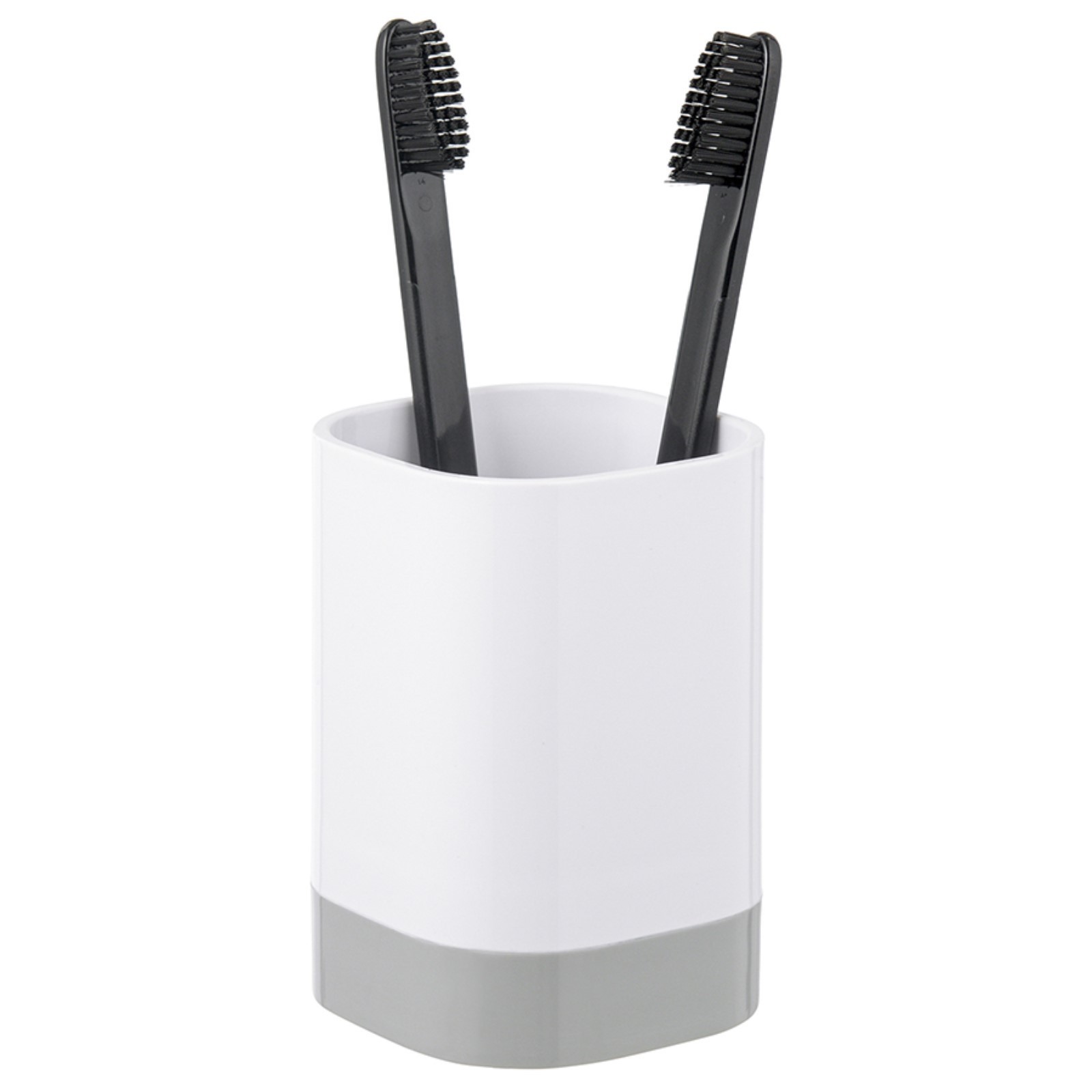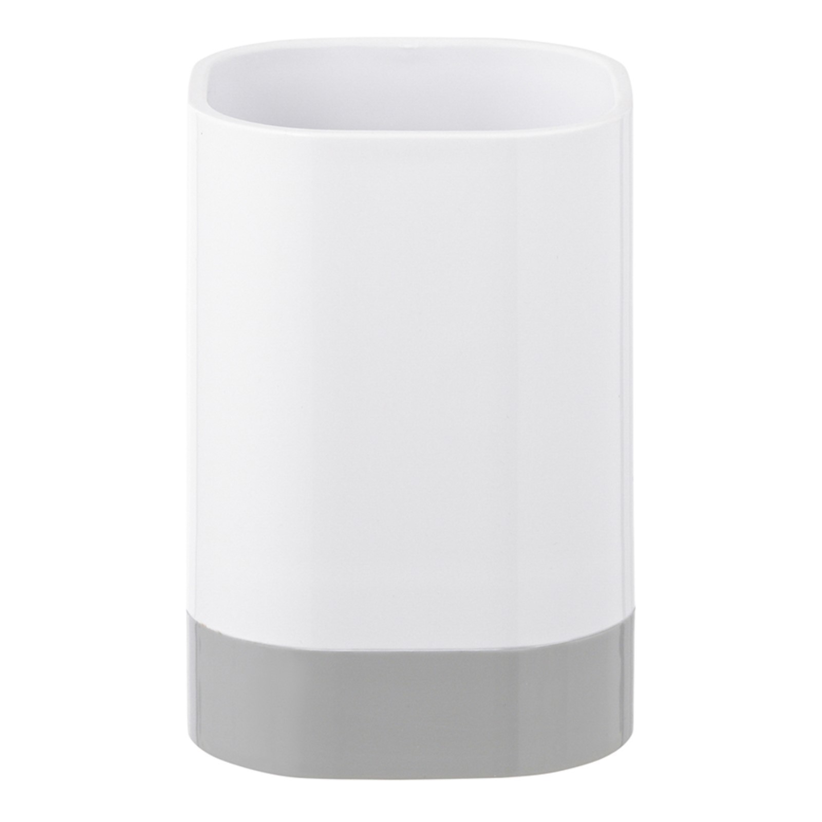 Стакан для зубных щёток bergenson bjorn bath tyer, 470 мл. Стакан для зубных щёток Tyer выполнен из высококачественного пластика и акрила, что обеспечивает ему долговечность и возможность эксплуатации в условиях повышенной влажности. Пластиковые элементы обладают превосходной устойчивостью к механическим повреждениям, а акриловые – придают изделию деликатный блеск, делая дизайн привлекательным. Компактный аксессуар не занимает много места на раковине и полке. Размеры: 7. 6х7. 6х11. 3 см. Объём: 470 мл. Цвет: белый/серый. Стакан можно очищать в тёплой воде с помощью мягких моющих средств. Запрещается использование агрессивной бытовой химии и абразивных материалов. Цвет: Белый Количество секций: 1 Возраст: Любой Материал: Пластик Вид: Стакан/Подставка Вид крепления: Настольные Форма: Квадрат, куб Разделитель: Нет  развернуть описание ▼