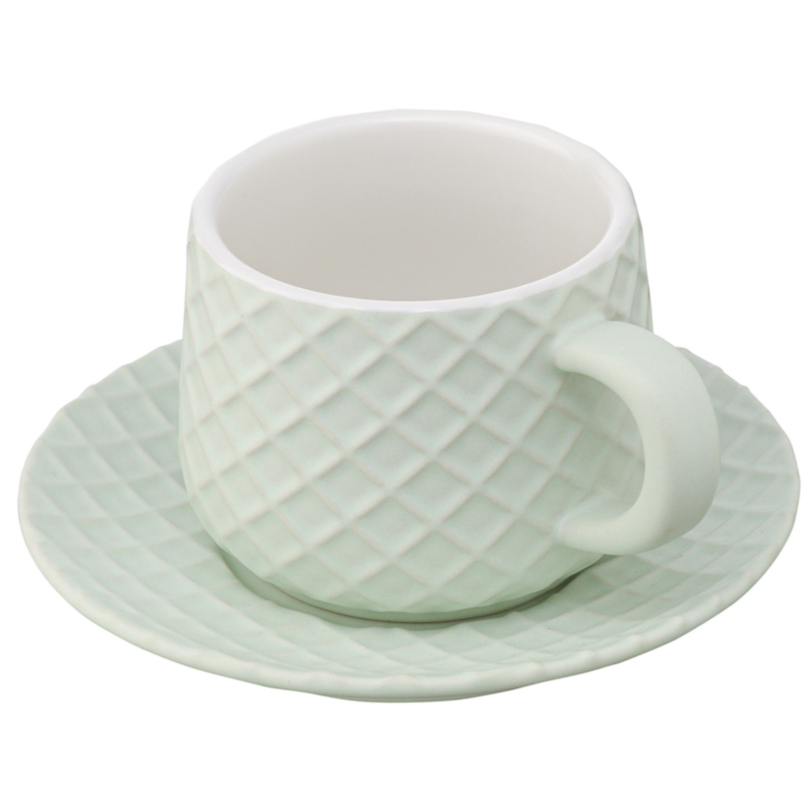 Чайная пара liberty jones marshmallow, 300 мл, цвет мятный. Коллекция посуды Marshmallow привнесет в ваш дом ощущение тепла, поможет создать идеальную атмосферу для приёма гостей и уютных семейных застолий. Чайная пара из коллекции Marshmallow – оптимальный вариант для тех, кто предпочитает сочетание практичности и необычного дизайна. Чашка и блюдце выполнены из каменной керамики с отличными эксплуатационными свойствами, среди которых экологичность, устойчивость к износу и температурным перепадам. Материал не впитывает запахи и загрязнения. Глазурованное покрытие легко очищается, обеспечивает изделиям декоративный вид и защищает от внешних воздействий. Узор, напоминающий соты, и интересная утолщенная ручка придают посуде особый шарм. Наши продукты прошли испытания на отсутствие в составе свинца и кадмия в соответствии со стандартными тестами FDA. Объём чашки: 300 мл. Цвет: мятный. Допускается мытье в посудомоечной машине, заморозка, использование в микроволновой печи и духовке при температуре не выше 230 °C. Цвет: Бирюзовый Количество персон: 1 В наборе, шт.: 2 Объём, мл: 300 tnved: 6911100000 Тематика: Однотонная Материал: Каменная керамика Наличие подставки: Нет Можно мыть в посудомоечной машине: Да Можно использовать в СВЧ-печи: Да Текстура: С рельефом Тип: Чайная пара Особенности: Выдавленный дизайн Матовая поверхность: Нет Серия: Marshmallow Серия: Liberty Jones Marshmallow  развернуть описание ▼