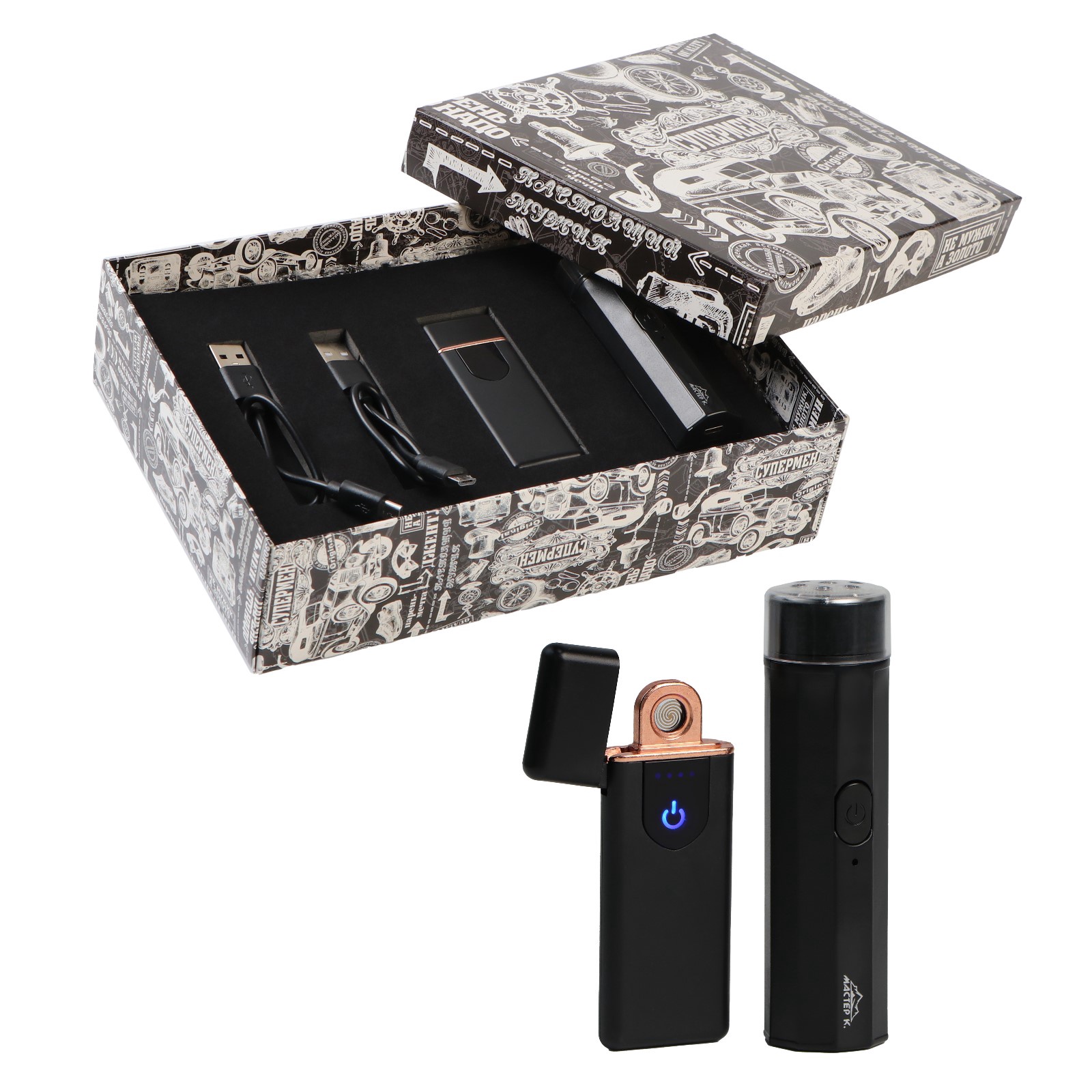 Подарочный набор 2 в 1: зажигалка электронная 7.5 3 см, электробритва 9.5 2.5 см
