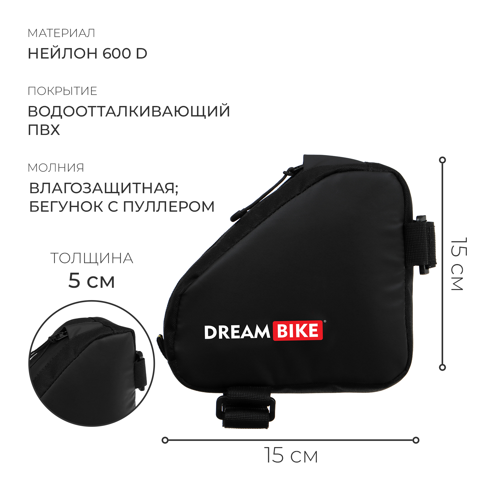 Велосумка dream bike «аптечка» на раму, 15х15х5 см. Велосумка Dream Bike — удобный аксессуар для хранения необходимых вещей при катании на велосипеде. Изделие легко и быстро крепится к раме при помощи строп с лентой-липучкой и не вызывает неудобств во время прогулки с ветерком. Преимущества: Качественный материал с водоотталкивающим покрытием. Влагозащитная молния. Подкладка на стенках сумки. Усиленный бегунок с пуллером. Две точки крепления к раме. Две стропы с лентой-липучкой. Параметры Размеры: 15 х 15 х 5 см. Длина строп с липучкой: 30 мм. Материал сумки: нейлон 600D, армированный легкий матовый PVC 450D. Вес: 70 г. Цвет: Чёрный parts count: 0 Тип: На раму Температурное ограничение: Нет Особенности: Влагонепроницаемый  развернуть описание ▼