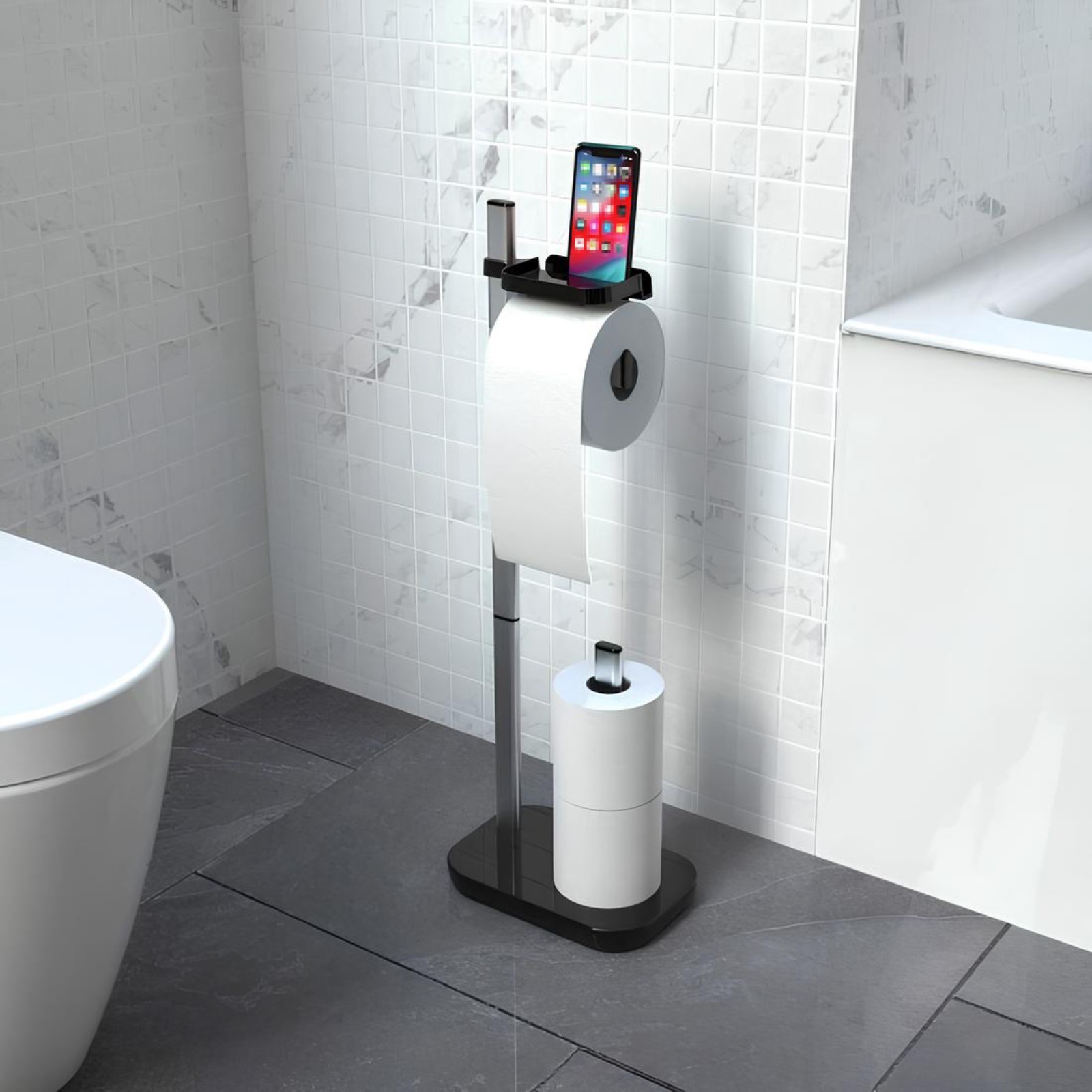 Стойка для туалетной бумаги напольная, 73x25x16 см, чёрный. Цвет: Чёрный Материал: Нержавеющая сталь