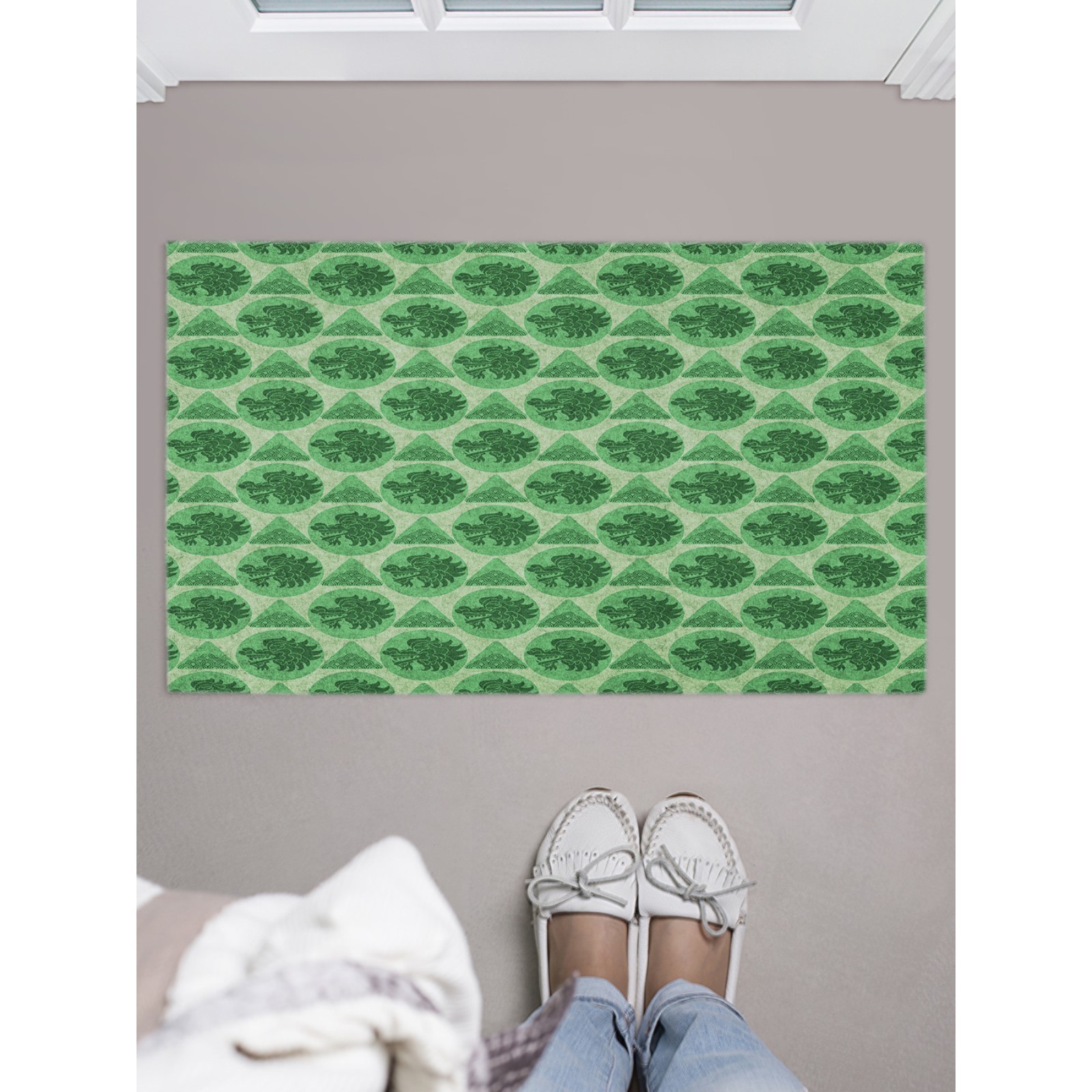 Придверный коврик в прихожую «зеленый дракон», размер 45х75 см. Цвет: Зелёный Форма: Прямоугольная Длина, см: 45 Ширина, см: 75 Тематика: Драконы Материал: Войлок Вид покрытия коврика: Текстильный Тип коврика: С коротким ворсом/гладкие Состав ткани: Полиэстер Форма: Прямоугольник  развернуть описание ▼