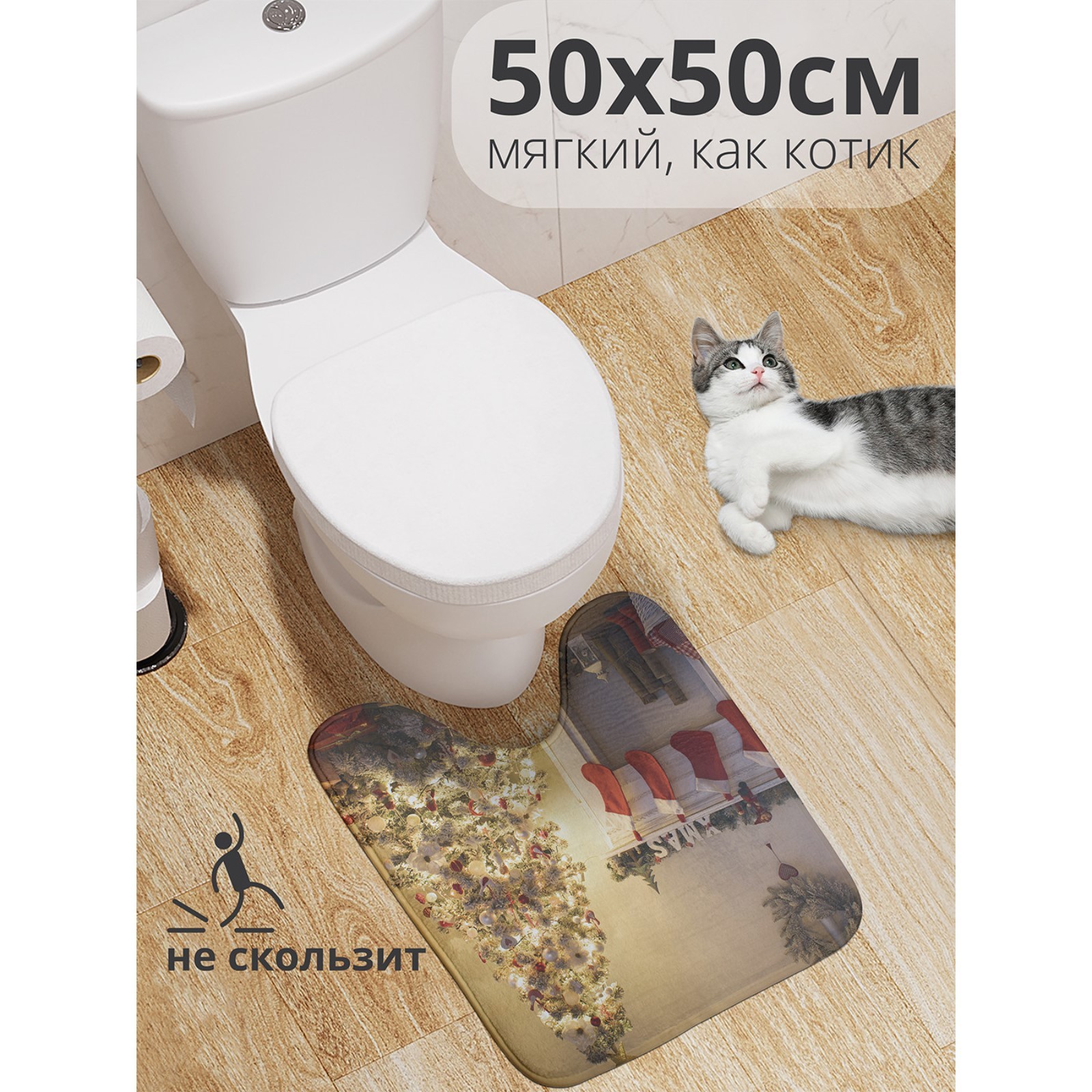 Коврик для туалета «новогодняя атмосфера», противоскользящий, размер 50x50 см. Цвет: Жёлтый Форма: Квадратная Длина, см: 50 Ширина, см: 50 Тематика: Рождественская Тематика: Праздник Тематика: Новогодняя Материал: Велсофт Рекомендации по уходу: Ручная стирка Тип коврика: Противоскользящие Тип коврика: Коврики для туалета Состав ткани: Полиэстер Форма: Квадрат, куб  развернуть описание ▼