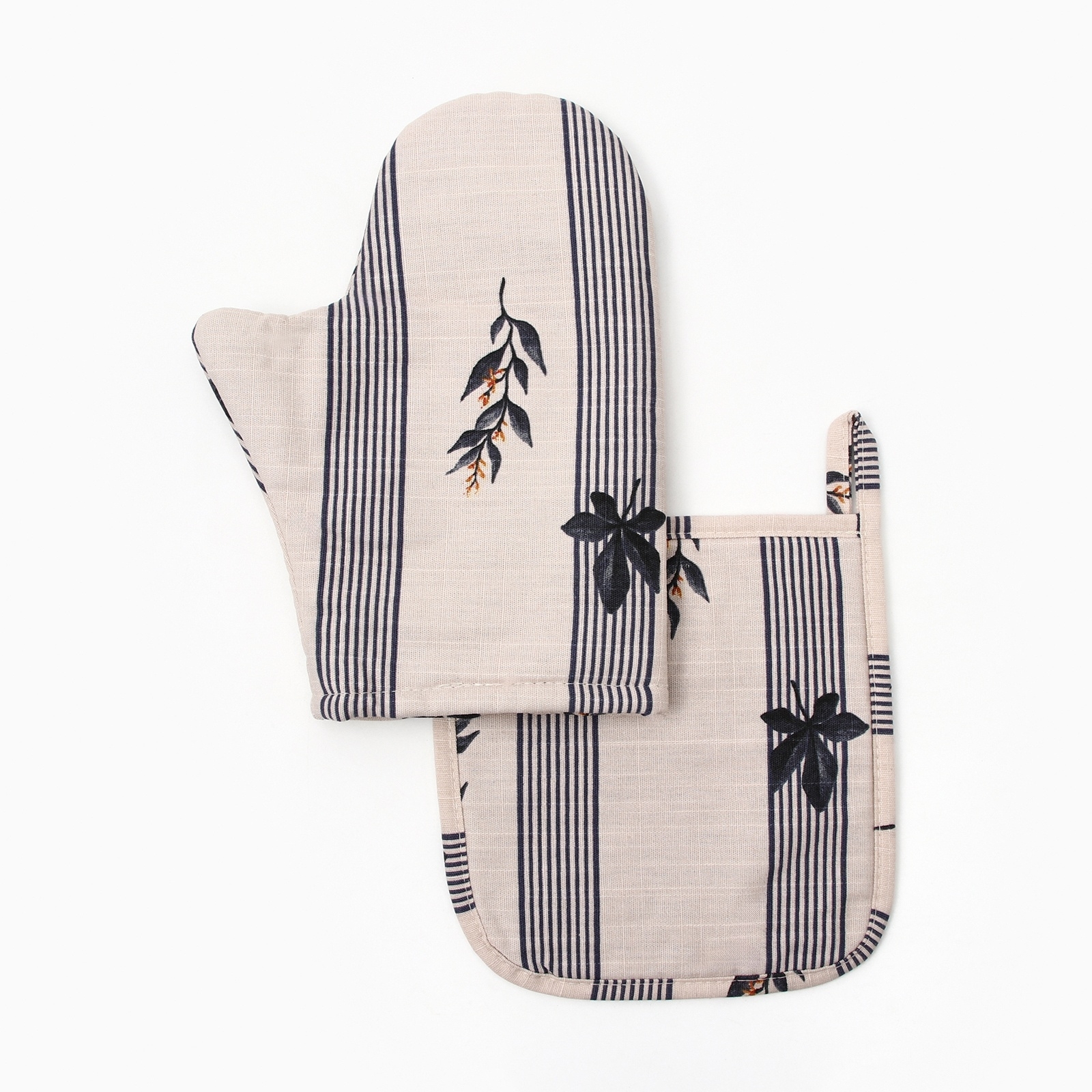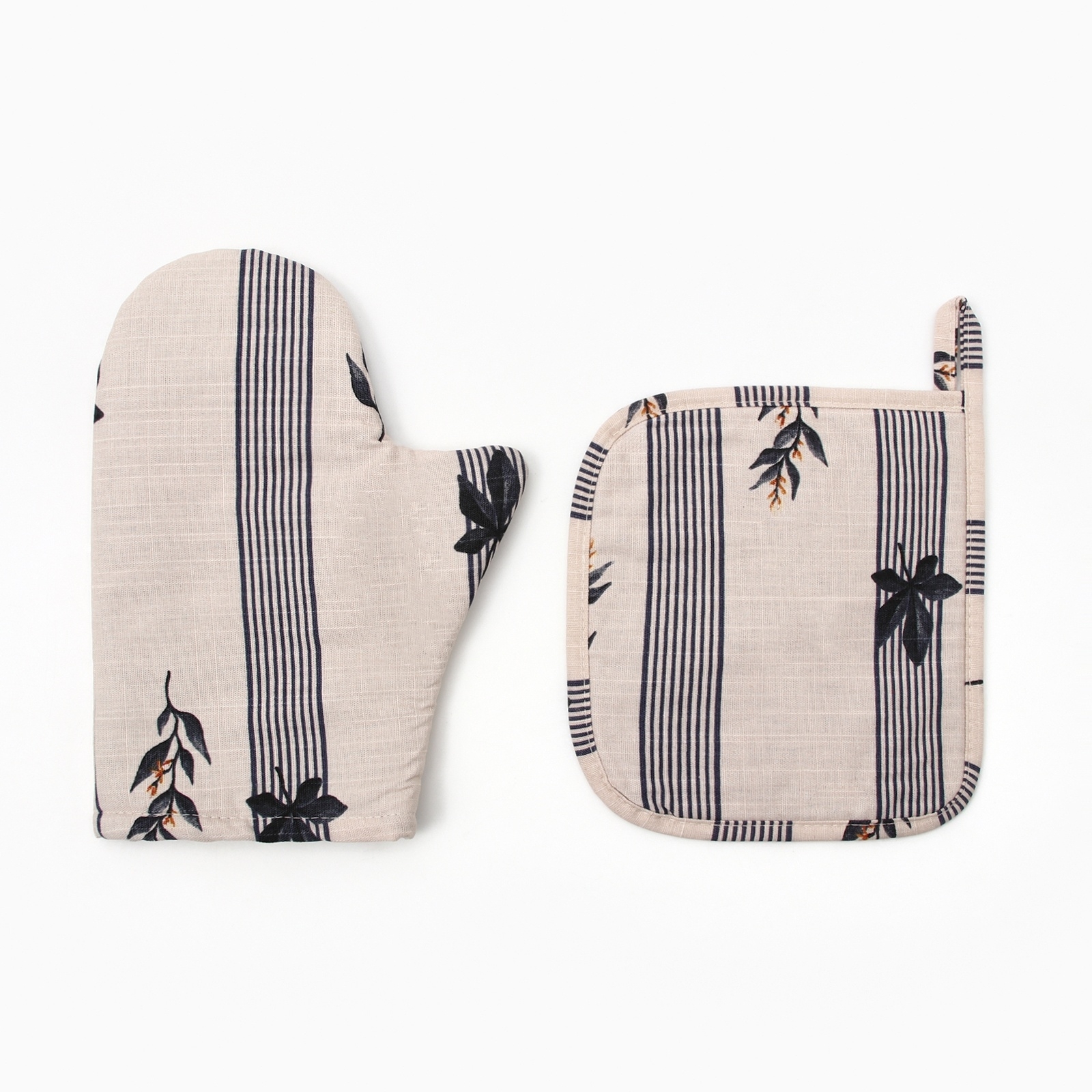 Набор варежка-прихватка, прихватка этель "Leaves" 100% х/л, репс 220 г/м2