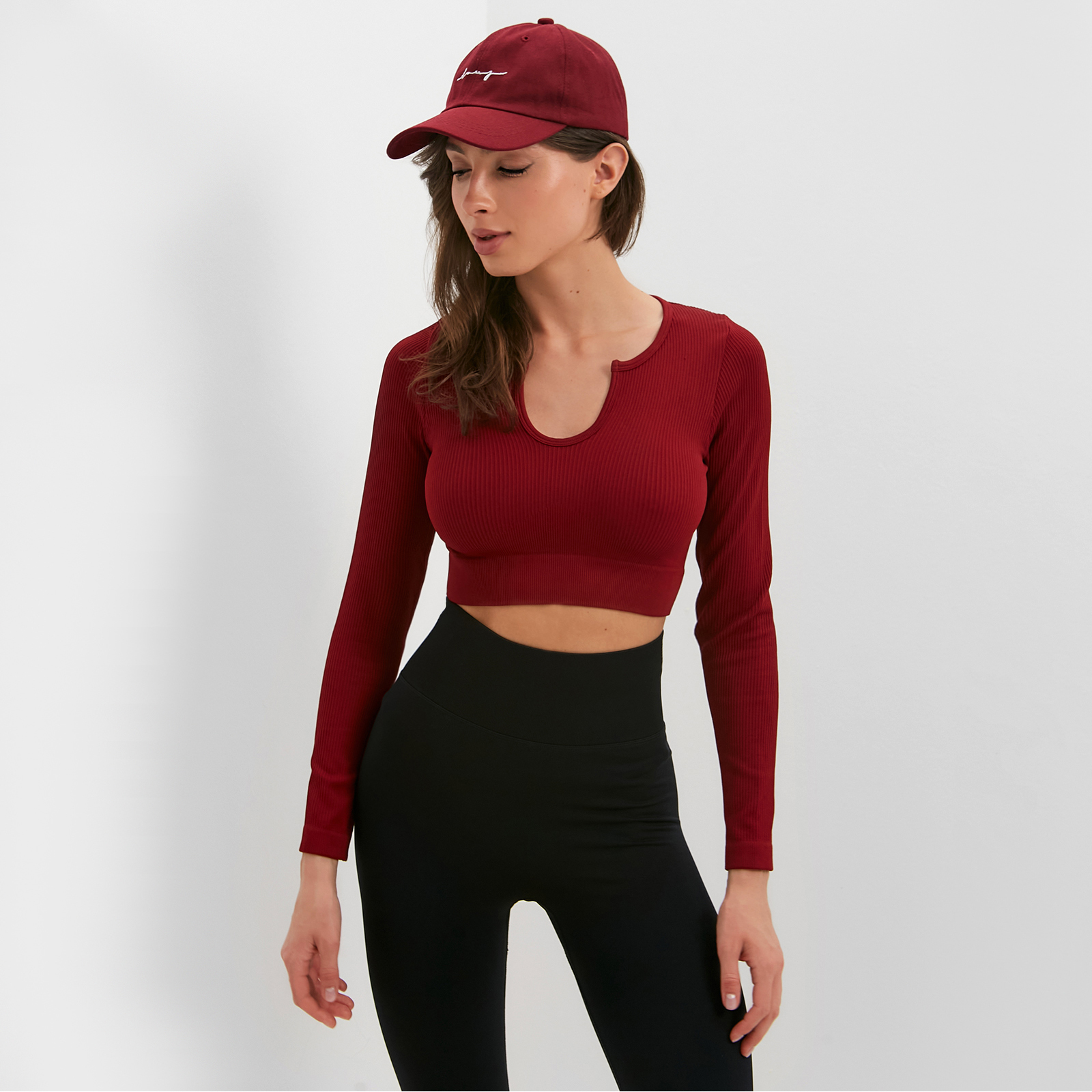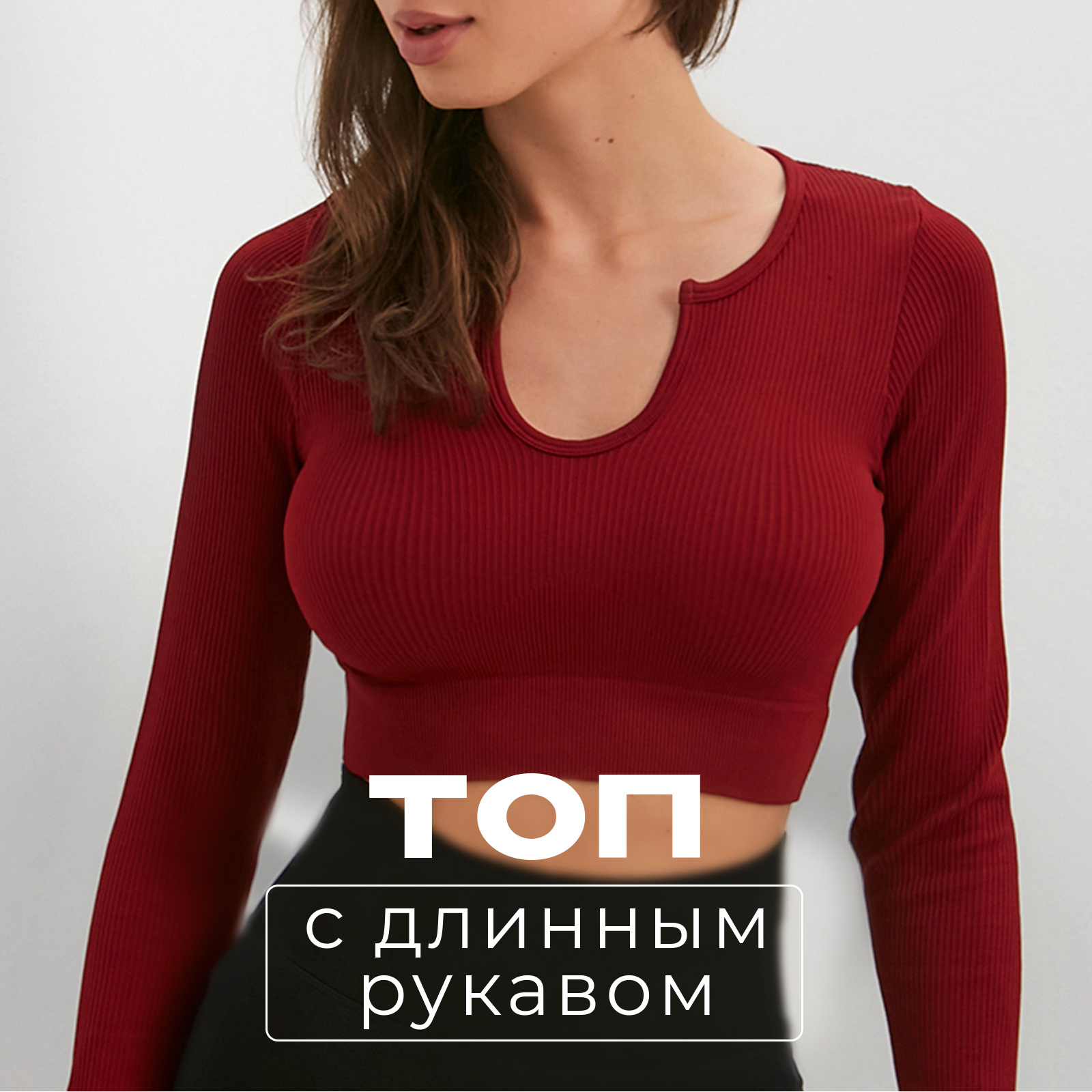 Топ с длинным рукавом Minaku: Sportly; цвет бордо р-р M