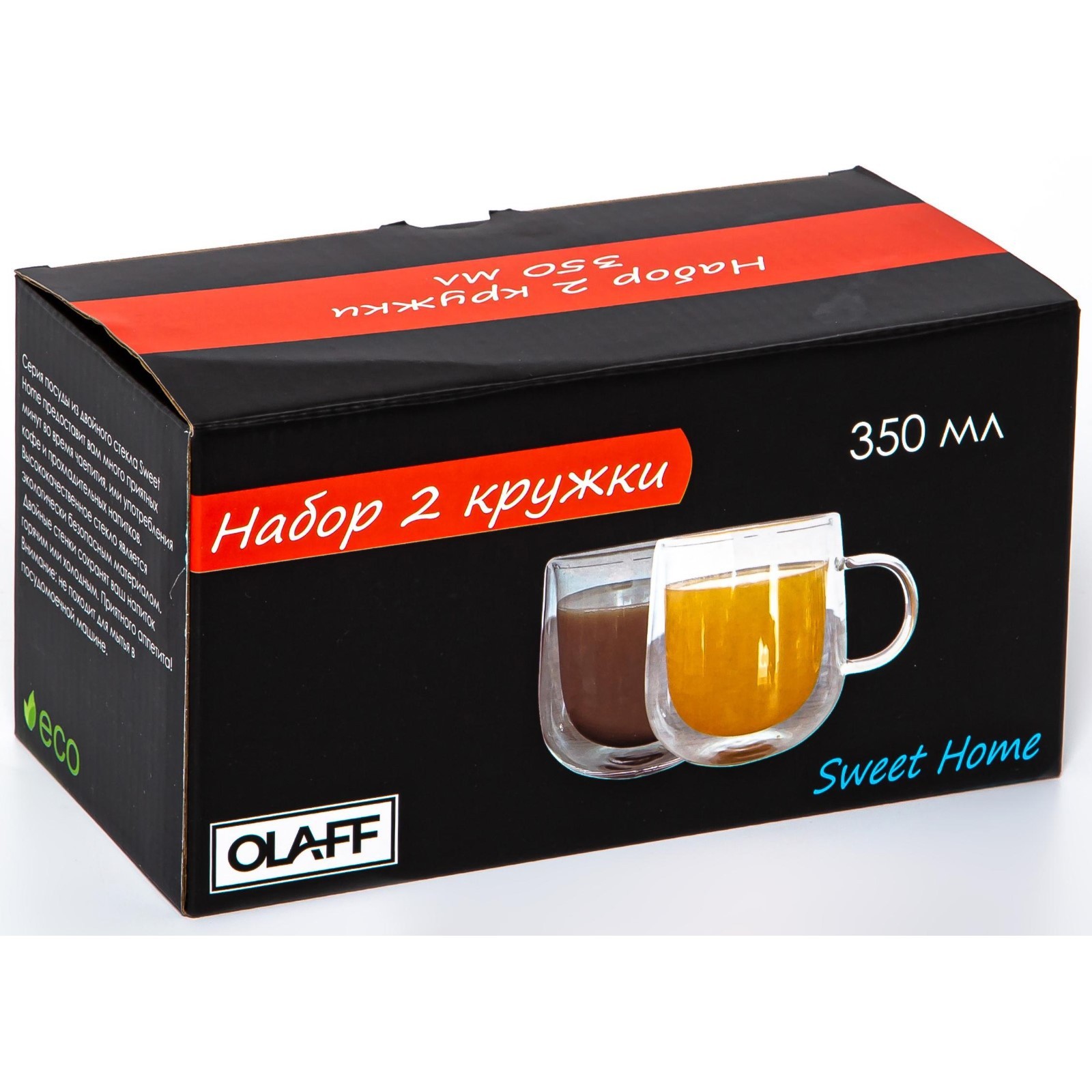 Набор кружек olaff, 350 мл, 2 шт. Изделие может иметь следующие несущественные дефекты: незначительный скол краски;прерывание и наплыв рисунка;наличие полосы на рисунке;потёртости и наплыв золотой краски на внутренней стороне;небольшие потёртости и царапины на глазури;засорения под глазурью;плотные вздутия глазури на внутренней поверхности;натёк глазури;наличие мушек (чёрных точек);неровность внутреннего отверстия;отклеивание страз;потёртость упаковки в уголках. Данные недостатки не влияют на свойства изделия при использовании. Цвет: Прозрачный В наборе, шт.: 2 Объём, мл: 350 Тематика: Однотонная Материал: Стекло Дополнительный аксессуар: Без аксессуаров Можно мыть в посудомоечной машине: Нет Можно использовать в СВЧ-печи: Нет Текстура: Гладкая Особенности: Без особенностей Матовая поверхность: Нет  развернуть описание ▼