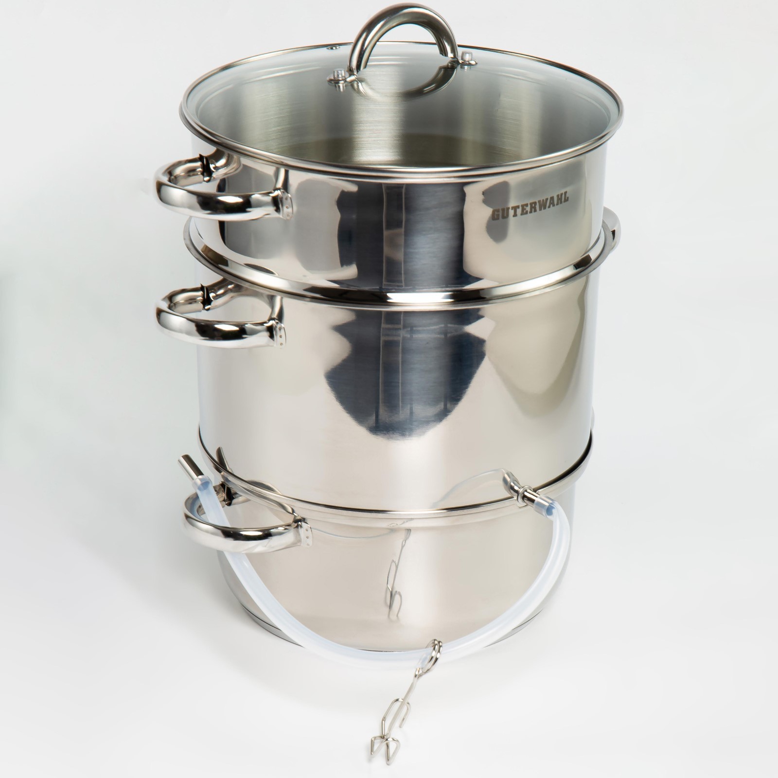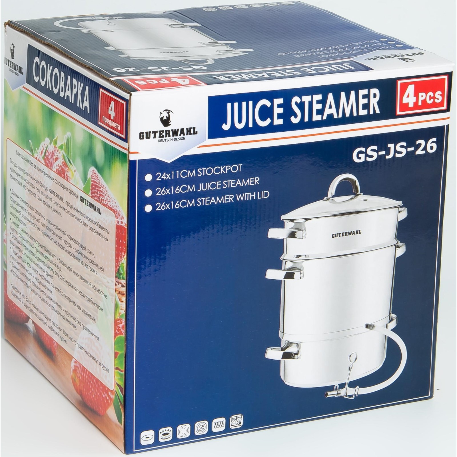 Соковарка guterwahl. Изделие может иметь следующие несущественные дефекты: незначительный скол краски;прерывание и наплыв рисунка;наличие полосы на рисунке;потёртости и наплыв золотой краски на внутренней стороне;небольшие потёртости и царапины на глазури;засорения под глазурью;плотные вздутия глазури на внутренней поверхности;натёк глазури;наличие мушек (чёрных точек);неровность внутреннего отверстия;отклеивание страз;потёртость упаковки в уголках. Данные недостатки не влияют на свойства изделия при использовании. Цвет: Хромированный Объём, л: 8 Диаметр дна, см: 26 Материал: Металл Тип плиты: Для стеклокерамической плиты Тип плиты: Для электрической плиты Тип плиты: Для галогенной плиты Тип плиты: Для газовой плиты Тип плиты: Для индукционной плиты  развернуть описание ▼