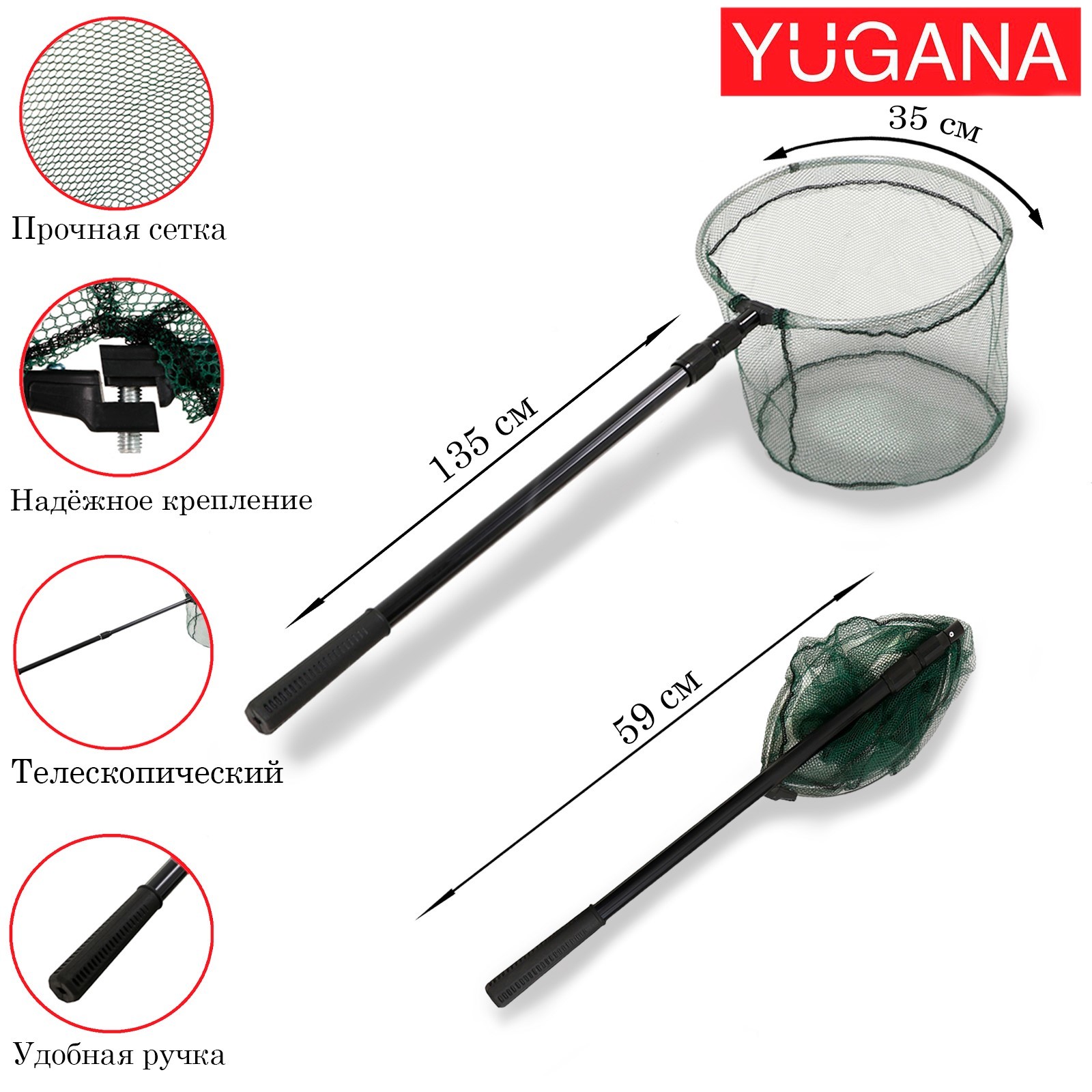 Подсачник складной телескопический п-01, усиленный, 170 см, круглый обод 35 см, капрон. Складной телескопический подсачек с прочной рукояткой и сачком из прорезиненного полиэстера. Сетка из такого материала меньше травмирует рыбу и минимизирует запутывание в ней крючков. Голова подсачека обладает положительной плавучестью, что облегчает процесс подсачивания рыбы и позволяет не потерять подсачек в случае, если он выпадет из лодки. Материал: Металл Материал: Пластик Материал: Текстиль Вид: Подсачек  развернуть описание ▼