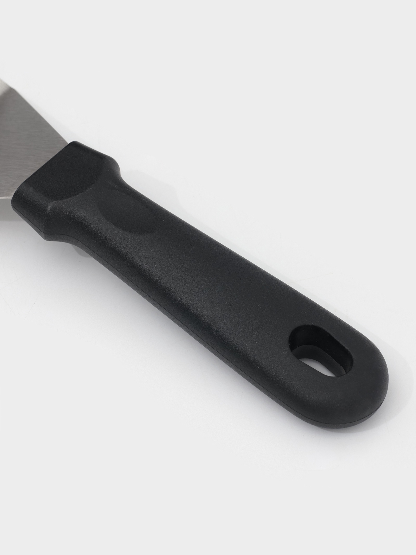 Лопатка кондитерская доляна, 30.5 7.2 см, нержавеющая сталь, чёрная. Кондитерская лопатка из нержавеющей стали — надёжный инструмент для точной и аккуратной работы с тестом, кремами и начинками. Размер 30.5 7.2 см делает её универсальной для использования в домашней и профессиональной выпечке. Белая пластиковая ручка обеспечивает удобный и уверенный захват даже при длительной работе. Преимущества Изготовлена из прочной нержавеющей стали — устойчива к деформации и коррозии.Белая ручка из пластика — эргономичная форма и антискользящая поверхность.Универсальный размер — подходит для замешивания, распределения и переноса теста.Легко очищается — можно мыть в посудомоечной машине без потери внешнего вида.Для чего нужна Эта лопатка поможет точно дозировать массу, равномерно распределять начинку или крем, а также аккуратно перекладывать тесто в форму. Подходит как для повседневного приготовления, так и для создания праздничных десертов. Простота формы и прочность материала делают её верным помощником на любой кухне. Набор:Нет|Цвет:Чёрный|Материал ручки:Пластик|Рисунок:Нет|Материал:Нержавеющая сталь|Тип покрытия:Без покрытия|Можно мыть в посудомоечной машине:Да|Вид:Кондитерские лопатки|Страна:Китай  развернуть описание ▼