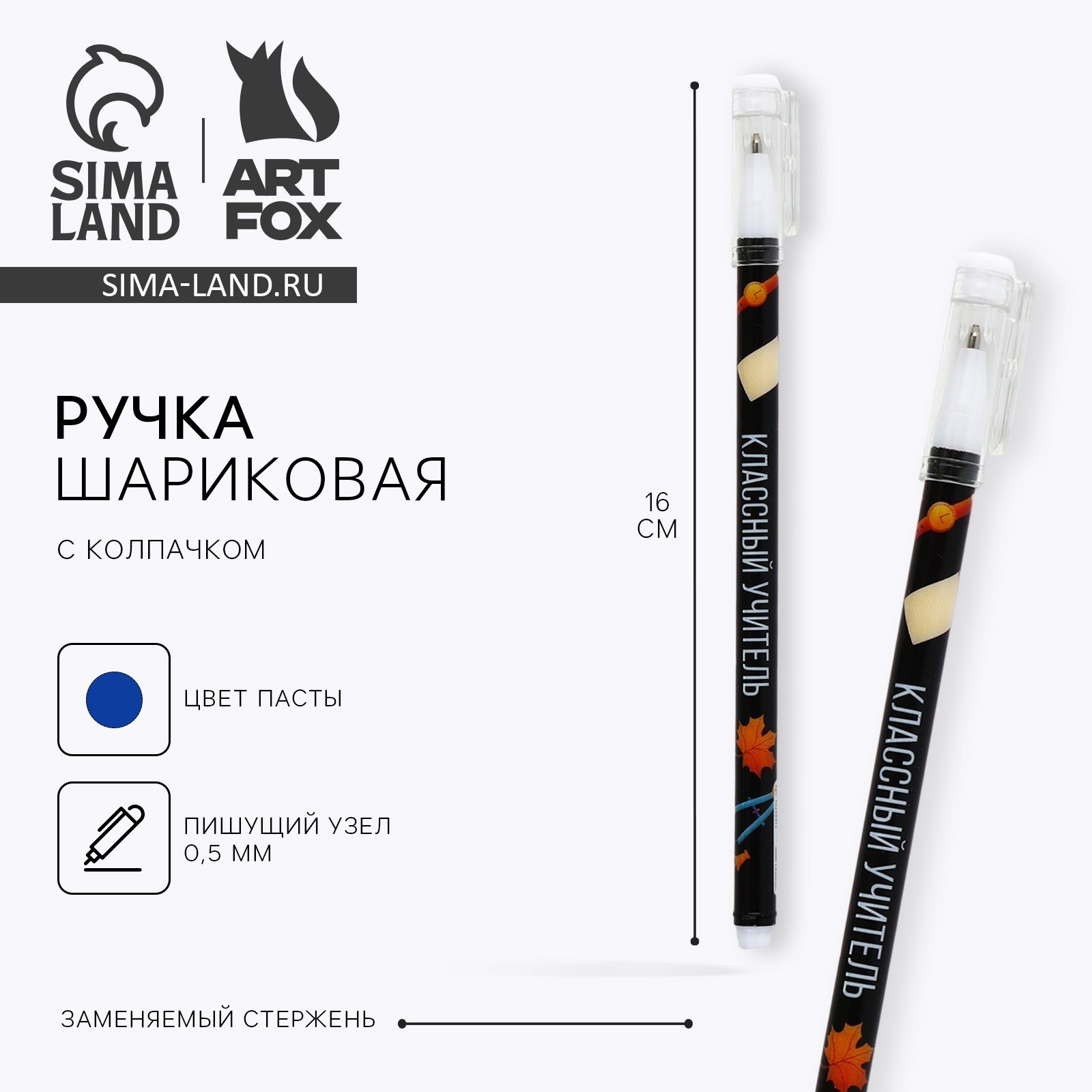 Ручка шариковая, синяя паста, пластиковая с колпачком, шариковая, 0.5 мм «классный учитель»