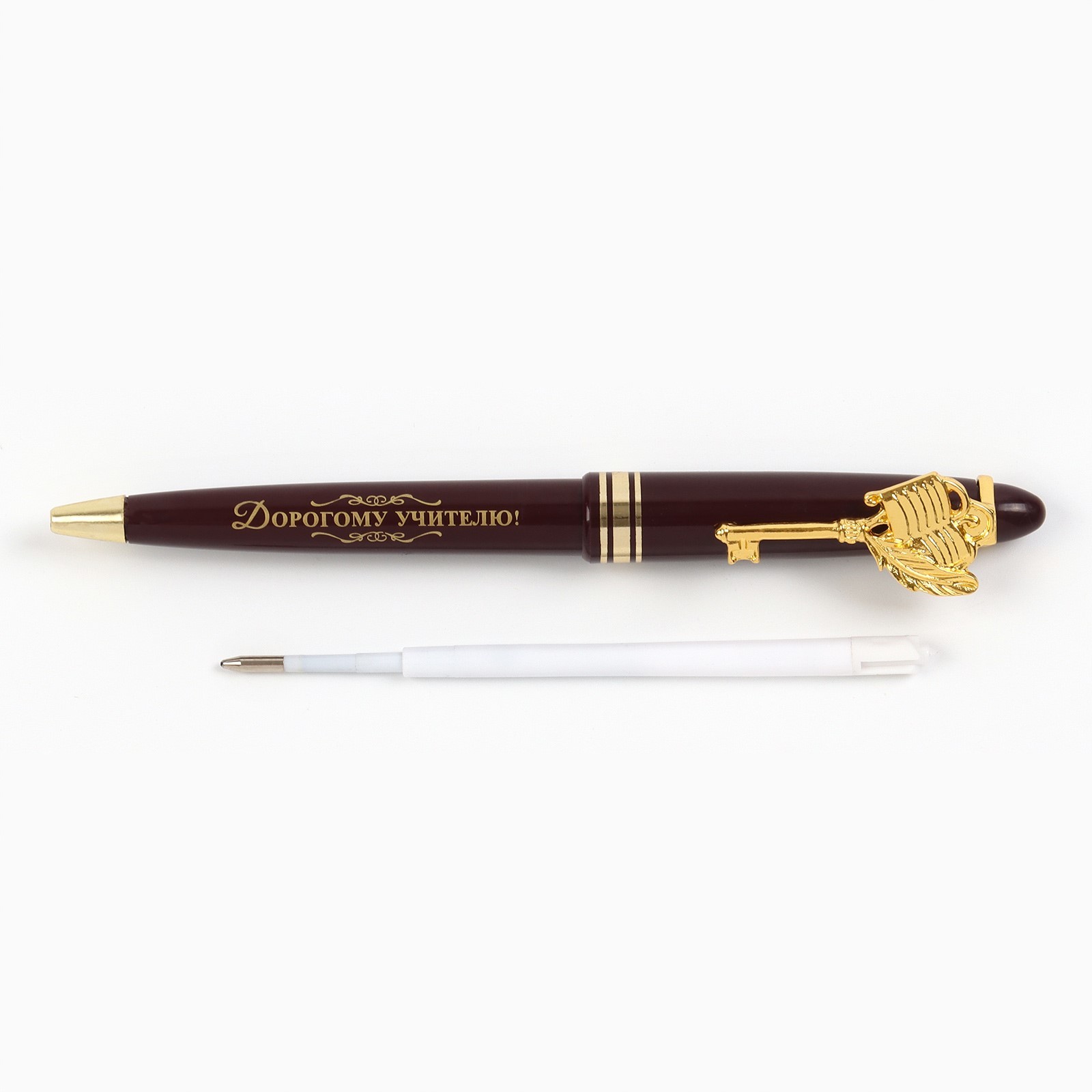 Ручка шариковая, подарочная, пластик, 1.0 мм «золотой учитель». Ручка отлично подойдет в качестве подарка. Яркий дизайн несомненно привлечет внимание и будет выделяться среди других предметов, а удобная форма корпуса позволит использовать ее с комфортом. Вид ручки: шариковая;Цвет стержня: синий;Стержень заменяемый: да;Материал: пластик;Форма корпуса: круглая.Диаметр пишущего узла, мм:1|Набор:Нет|Цвет:Коричневый|Тип:Автоматическая ручка|Вид ручки:Шариковая|Цвет стержня:Синий|Особенности ручек:Фигурный клип|Европодвес:Нет|Вид упаковки:Пакет|Тематика праздника:День учителя|Адресат:Учителю|Материал:Пластик|Материал упаковки:Полиэтилен|Стержень заменяемый:Да|Штрихкод на единице товара:Да|Наличие грипа:Нет|Страна:Китай  развернуть описание ▼