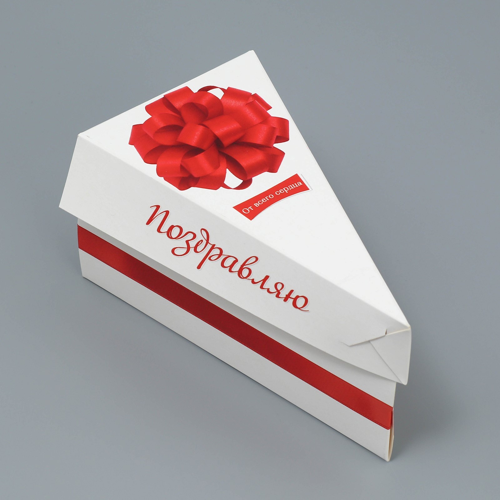 Коробка для торта, кондитерская упаковка «поздравляю», 15.5 х 8.5 х 8.5 см