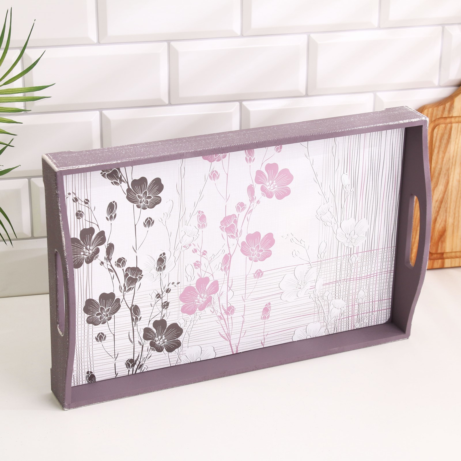 Поднос деревянный для завтрака "цветы" 43х27,5х7 см
