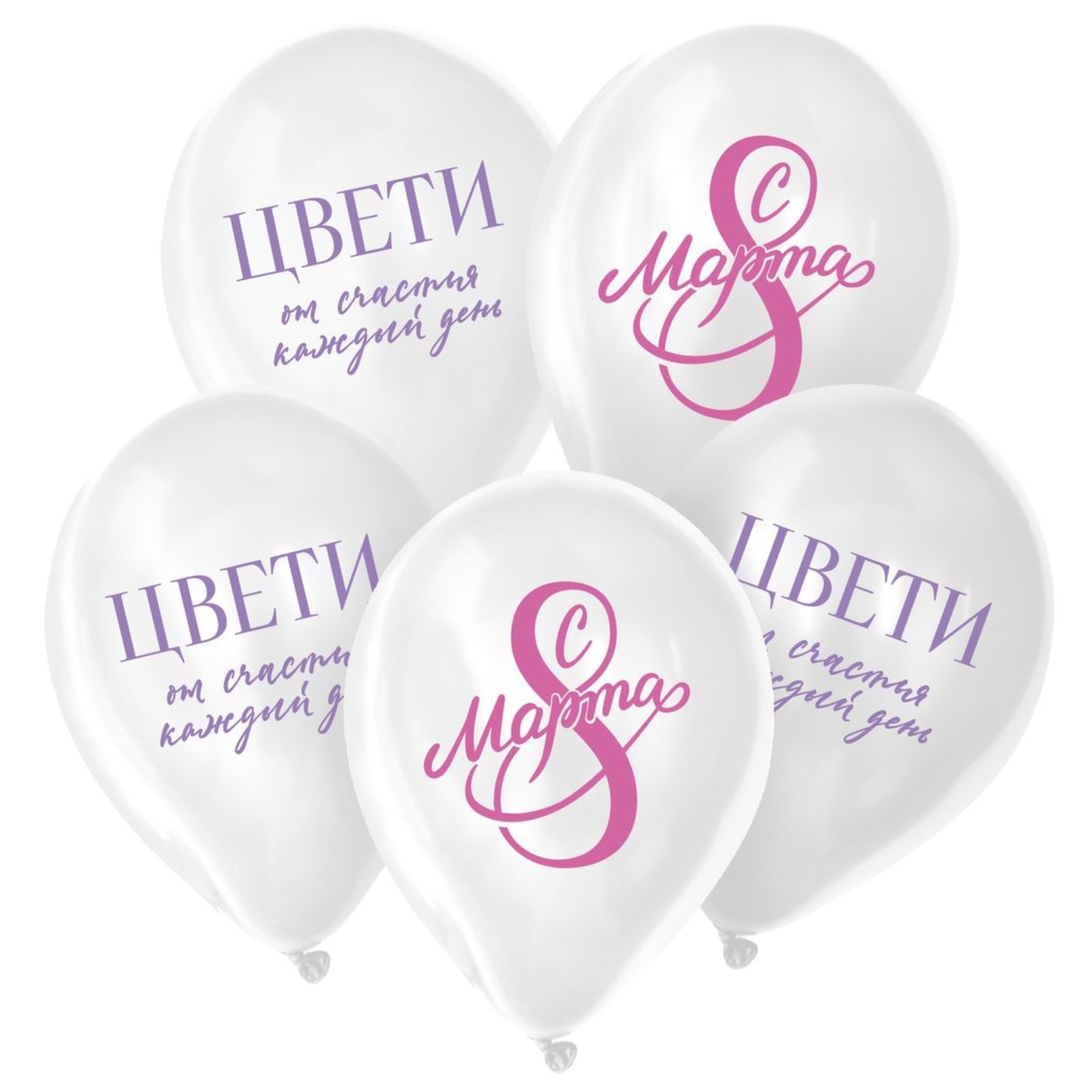 Воздушные шары латексные 12 «с 8 марта! цвети», 5 шт.