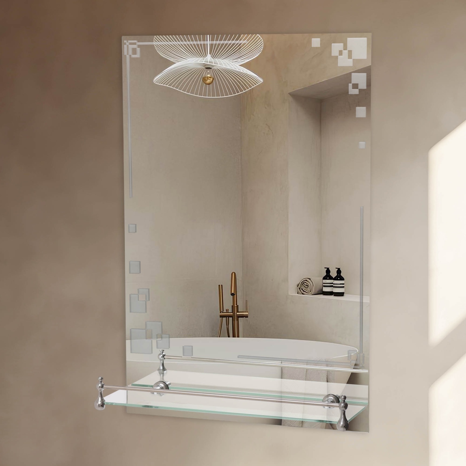 Зеркало настенное, с пескоструйной графикой, 60 х 40 см, с полочкой, 2 кронштейна