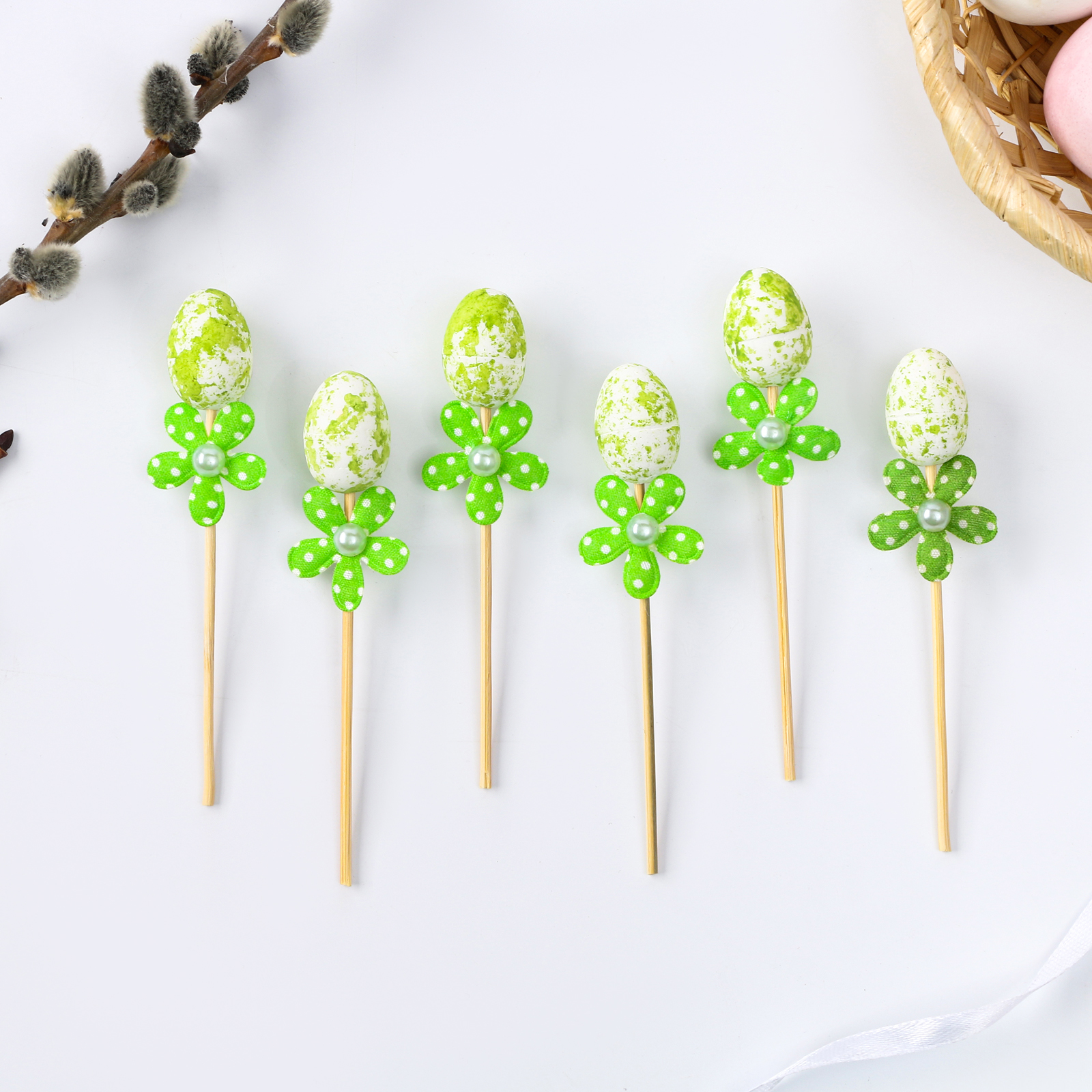 Шпажки яйцо цветочек зелёный, набор 6 шт.
