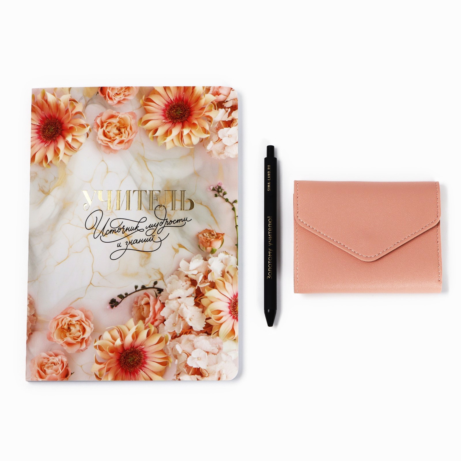 Подарочный набор, ежедневник а5+, 96 л, кошелёк и ручка «дорогому учителю»
