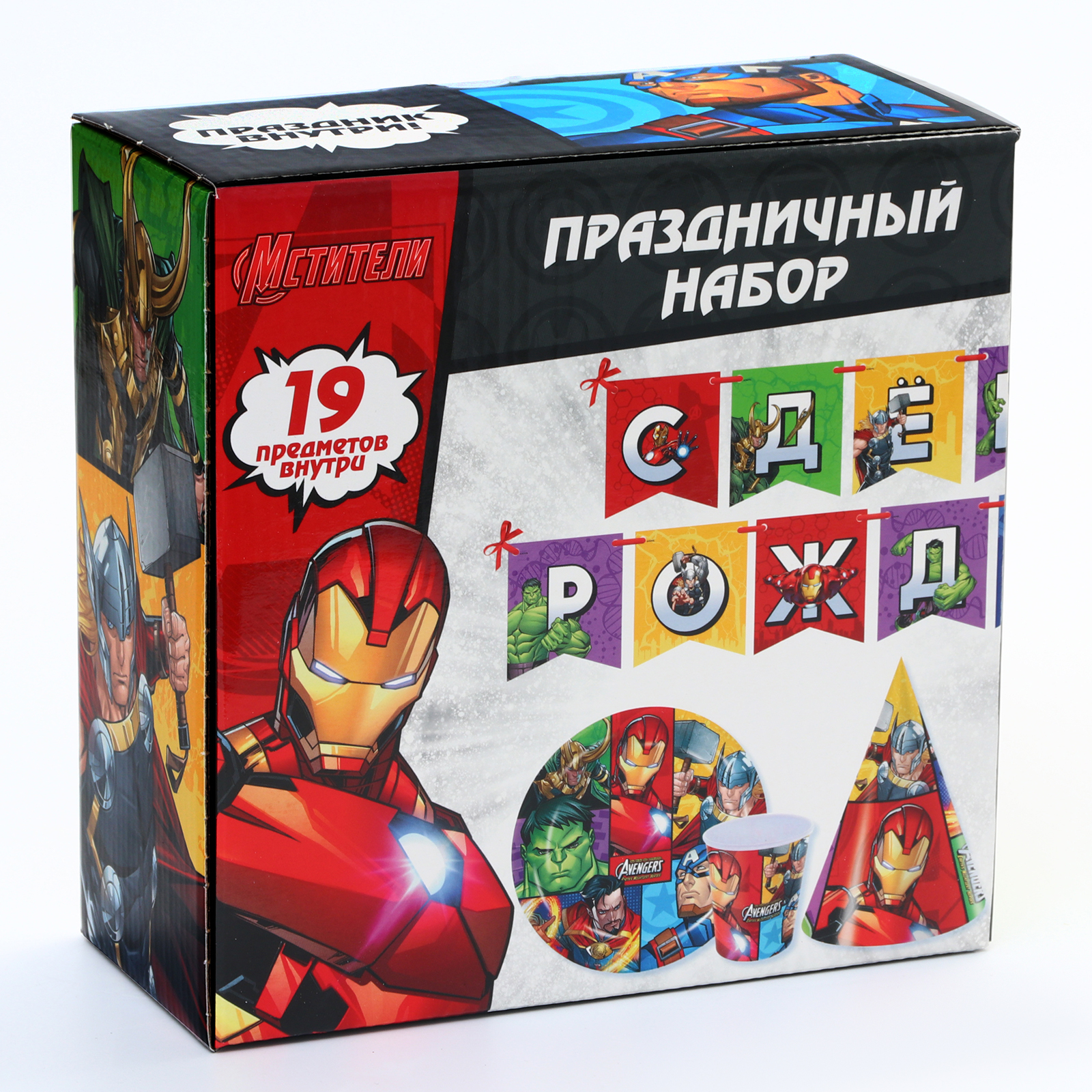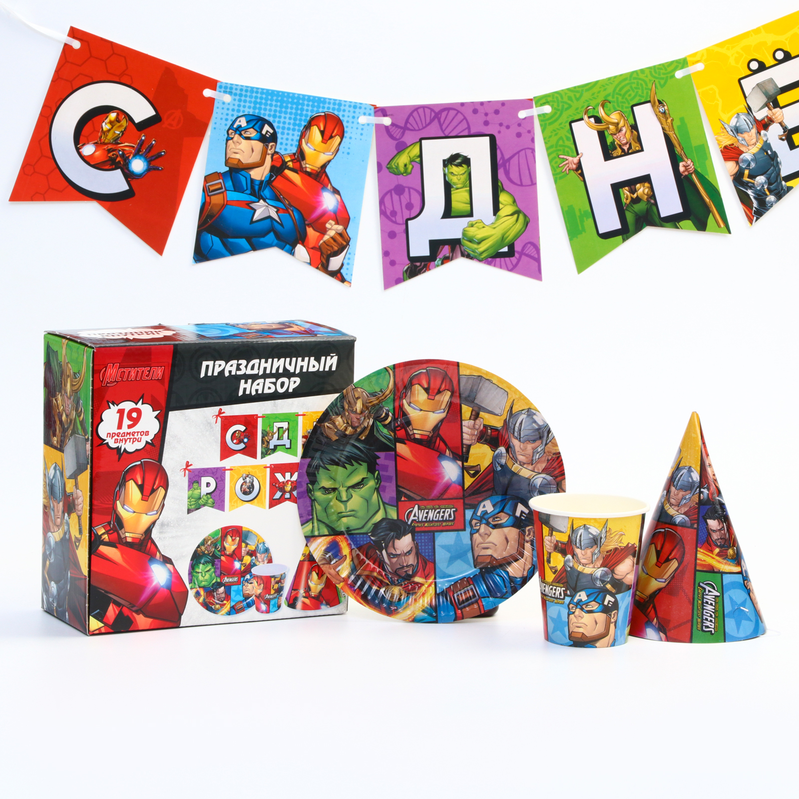 Набор бумажной посуды, на 6 персон "с днем рождения!", мстители