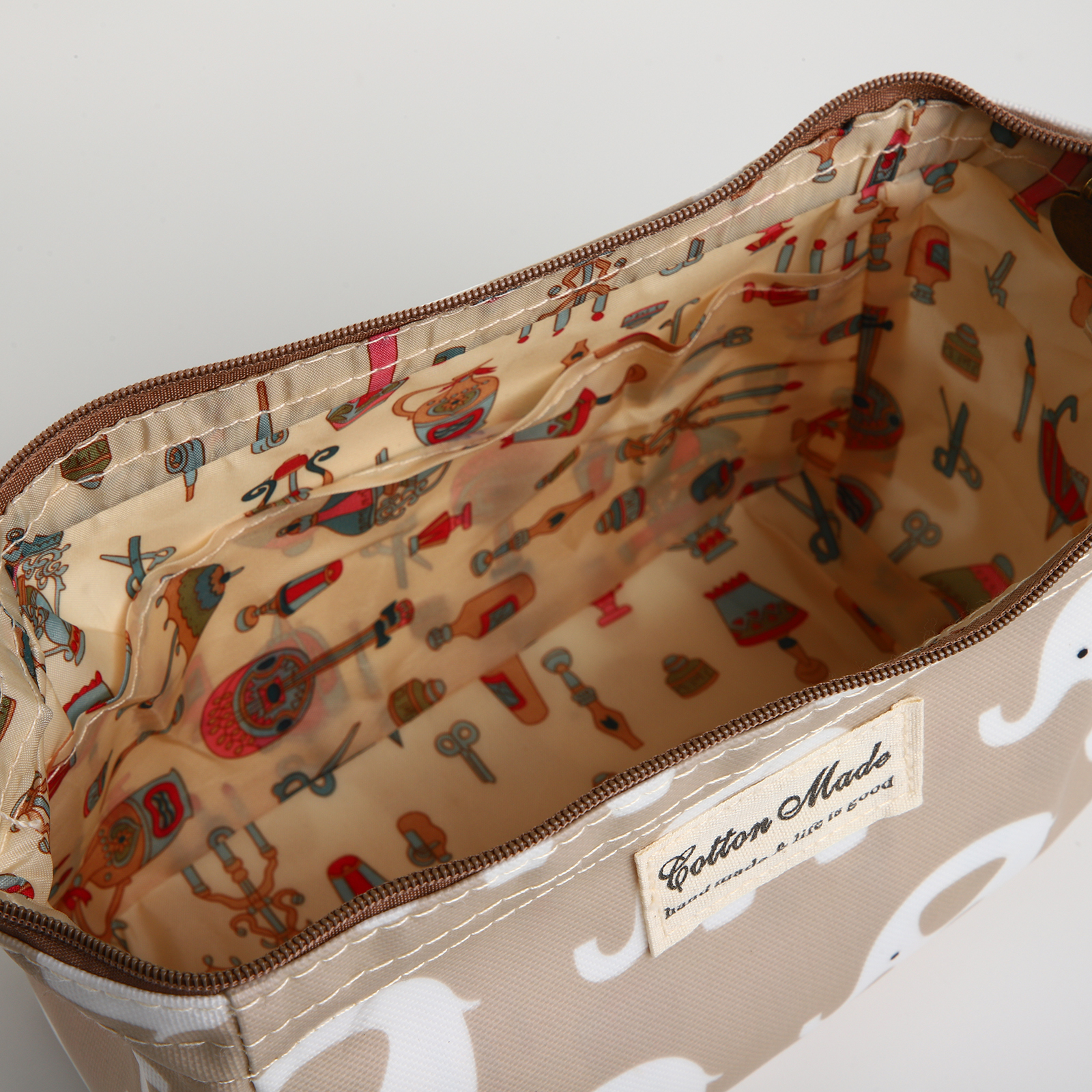 Косметичка на молнии, цвет бежевый. Цвет: Бежевый Для кого: Для девочки Для кого: Для женщины Вид застёжки: Молния Материал: Полиэстер  развернуть описание ▼