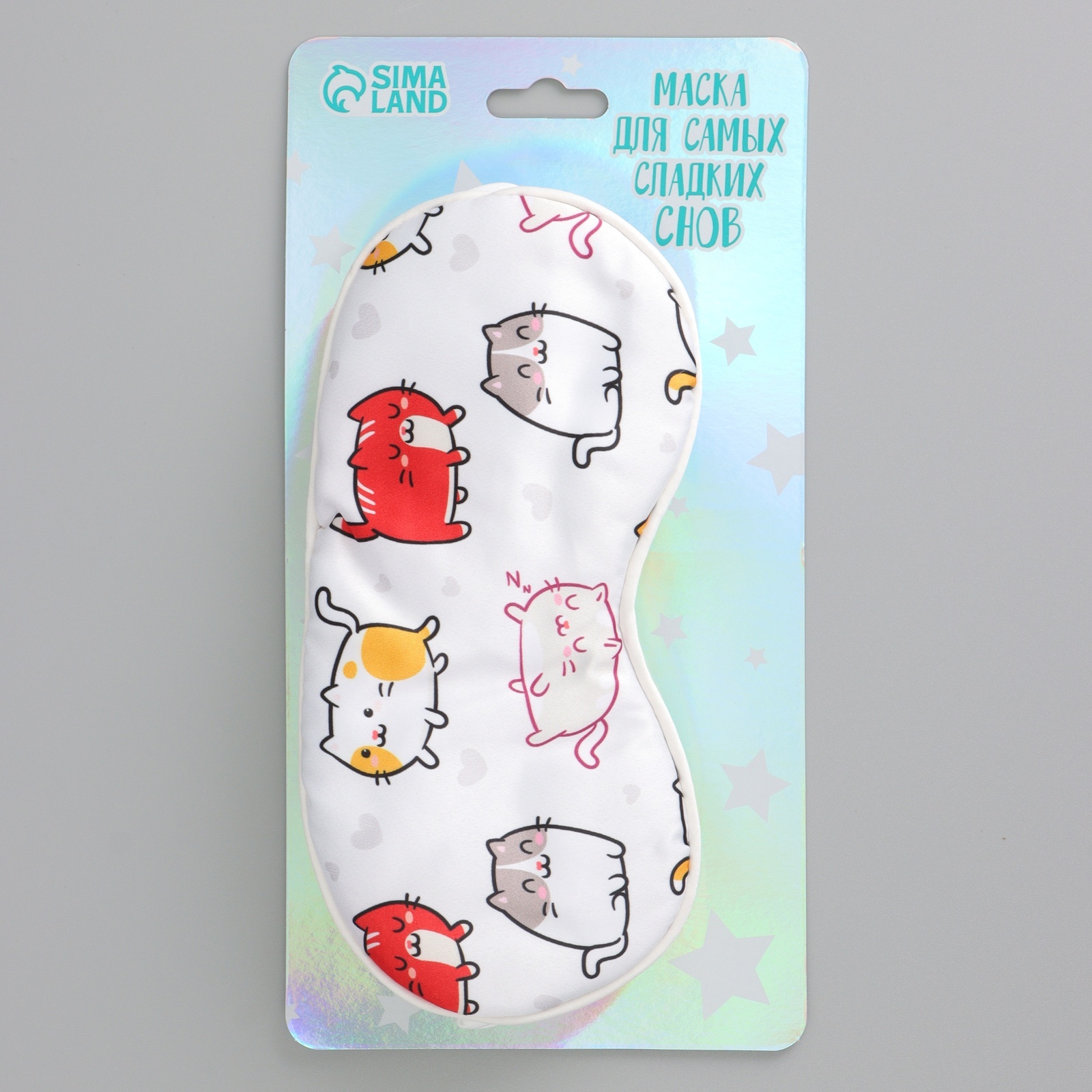 Маска шелковая для сна «котички», 20 х 9 см, цвет белый