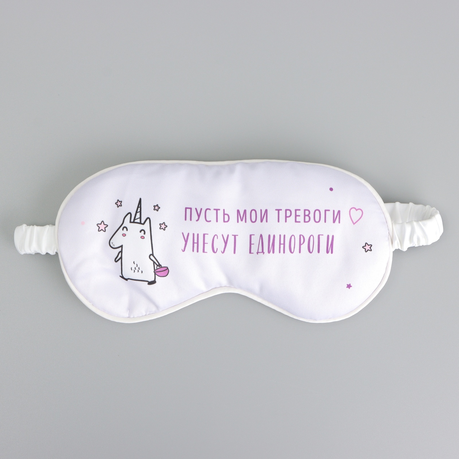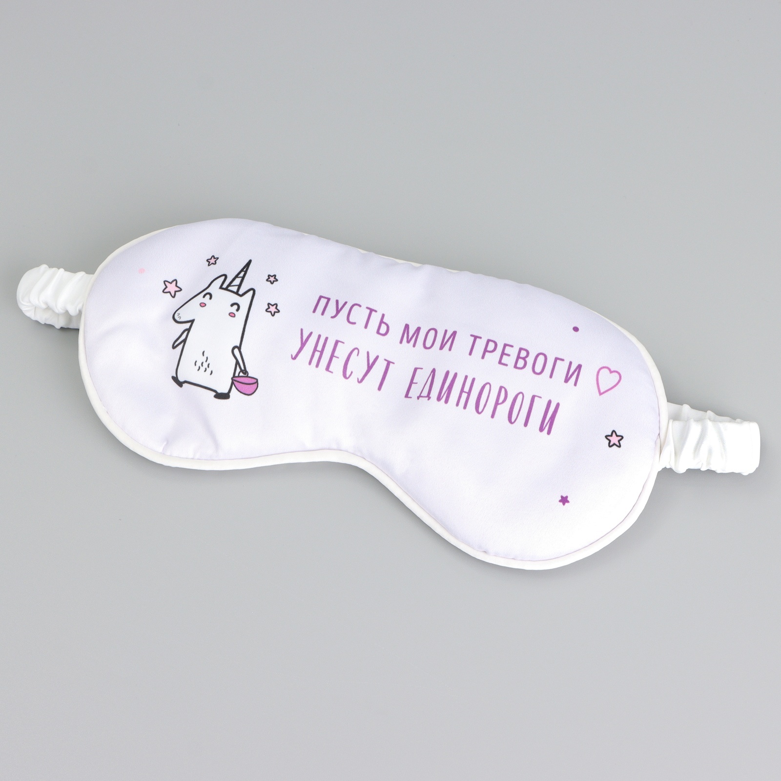 Маска шелковая для сна «единорог», 20 х 9 см, цвет белый.
