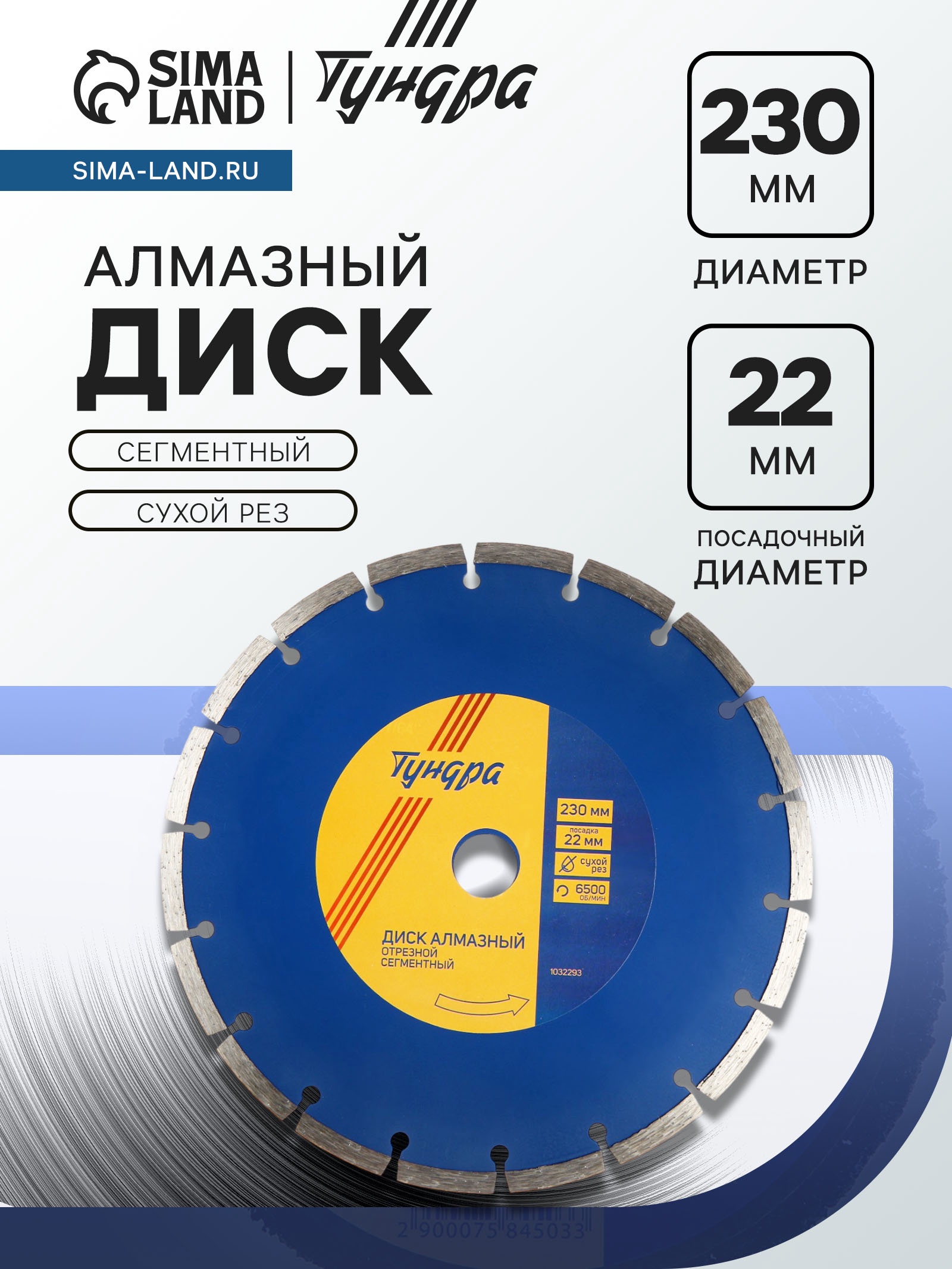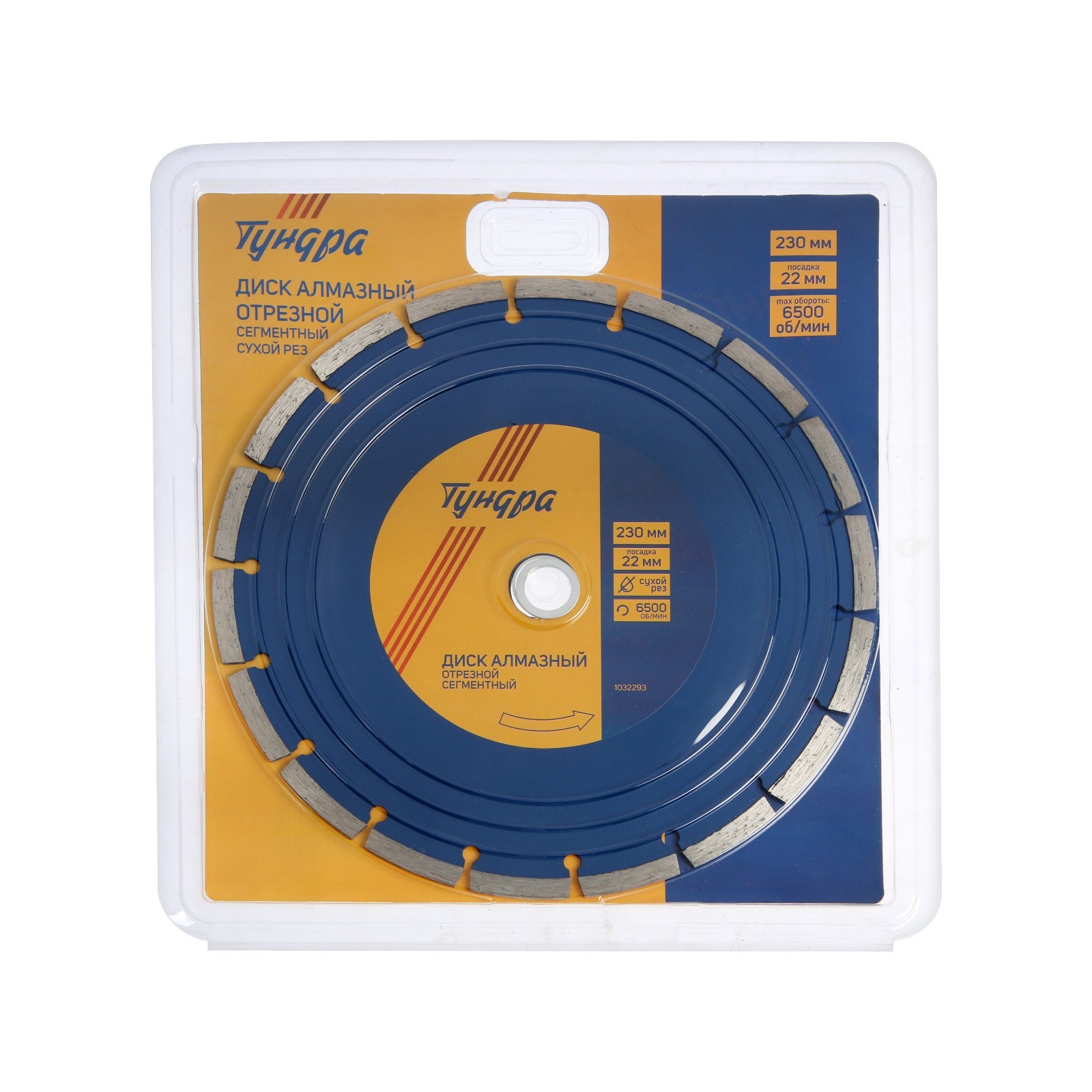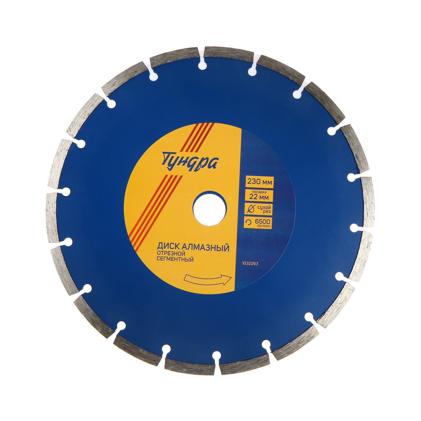 Диск алмазный отрезной тундра, сегментный, сухой рез, 230 22 мм