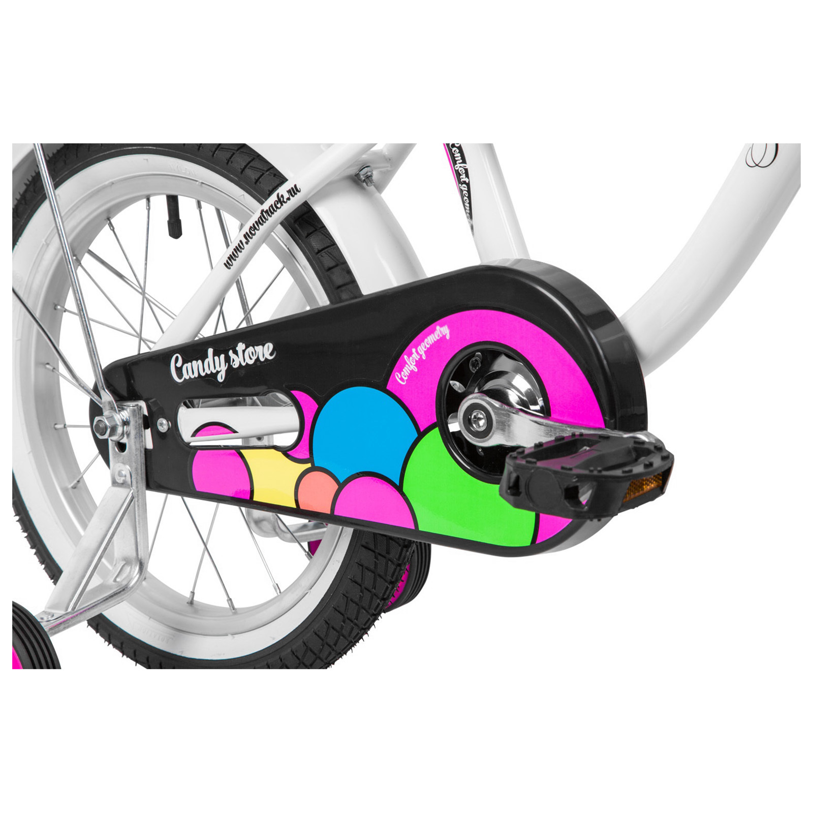 Велосипед 16" novatrack candy, цвет белый. Велосипед подойдёт для прогулок по городу и парковым зонам. Особенности Рама с заниженной трубой. Яркая и вместительная сумка на руле. Багажник для перевозки полезных мелочей. Защита цепи. Руль и сиденье регулируются по высоте. В комплекте боковые колёса, катафоты и звонок. Параметры Количество скоростей: 1. Диаметр колёс: 16". Вид обода: однослойный. Материал рамы: сталь. Тип вилки: жёсткая. Тип тормоза: задний ножной. Максимальная нагрузка: 40 кг. Рекомендованный рост: 110–115 см. Возраст ребёнка: 3–6 лет. Цвет: Белый Для кого: Для девочки Количество скоростей: 1 Максимально допустимый вес, кг: 40 Модельный год: 2023 Наличие амортизаторов: Без амортизаторов Материал рамы: Сталь Диаметр колёс, дюймы: 16 Передний тормоз: Отсутствует Задний тормоз: Ножной Складная рама: Нет Вид обода: Однослойный Рекомендуемый возраст, лет: 3 - 6 Рекомендуемый рост, см: 100 - 115 Возраст: Детский Подножка: Нет Вид: Городской Вид: Универсальный Багажник: Да Корзина: Нет Температурное ограничение: Нет Дополнительные боковые колёса: Да  развернуть описание ▼