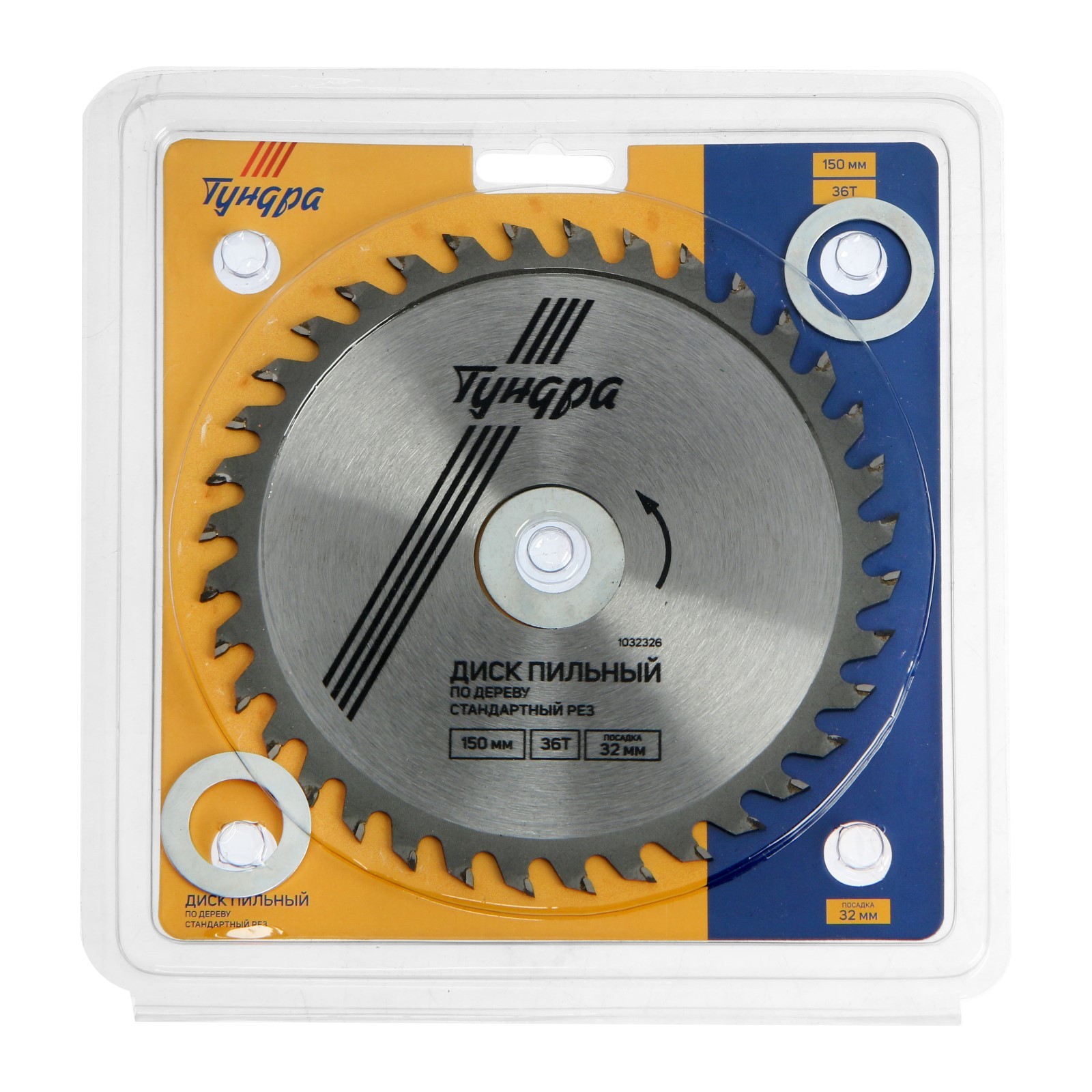 Диск пильный по дереву тундра, стандартный рез, 150 32 мм (кольца на 22.20,16), 36 зубьев