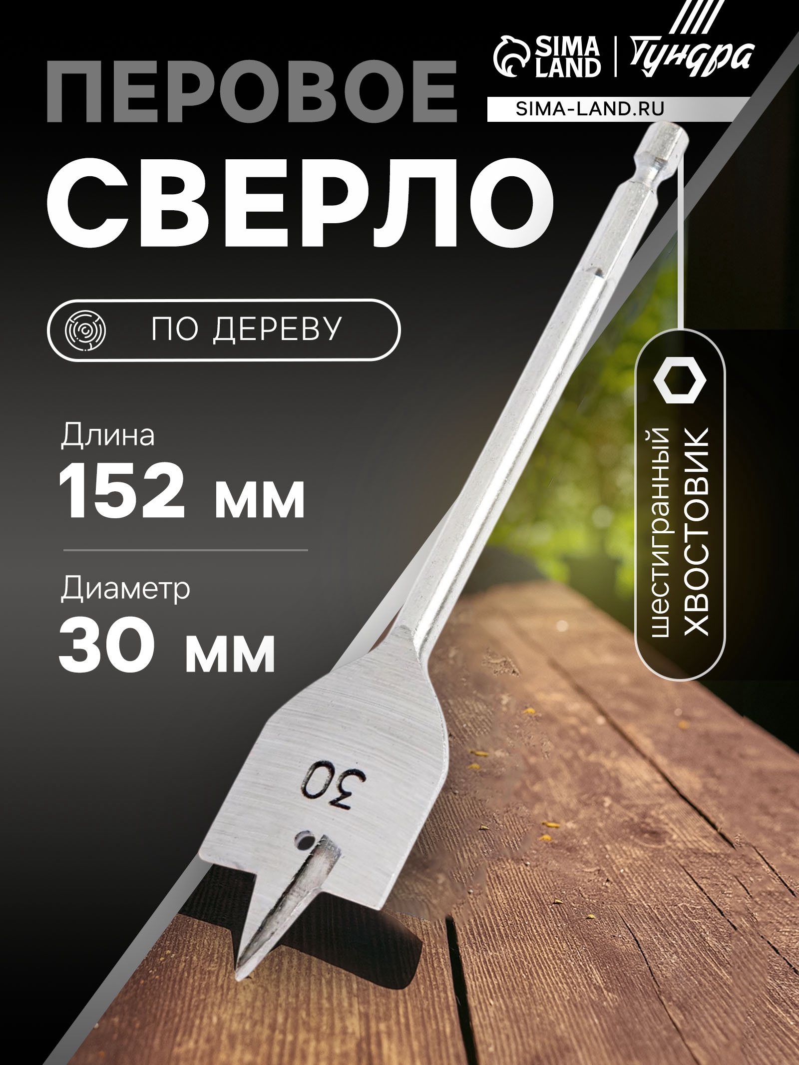 Сверло по дереву перовое тундра, шестигранный хвостовик, 30 152 мм