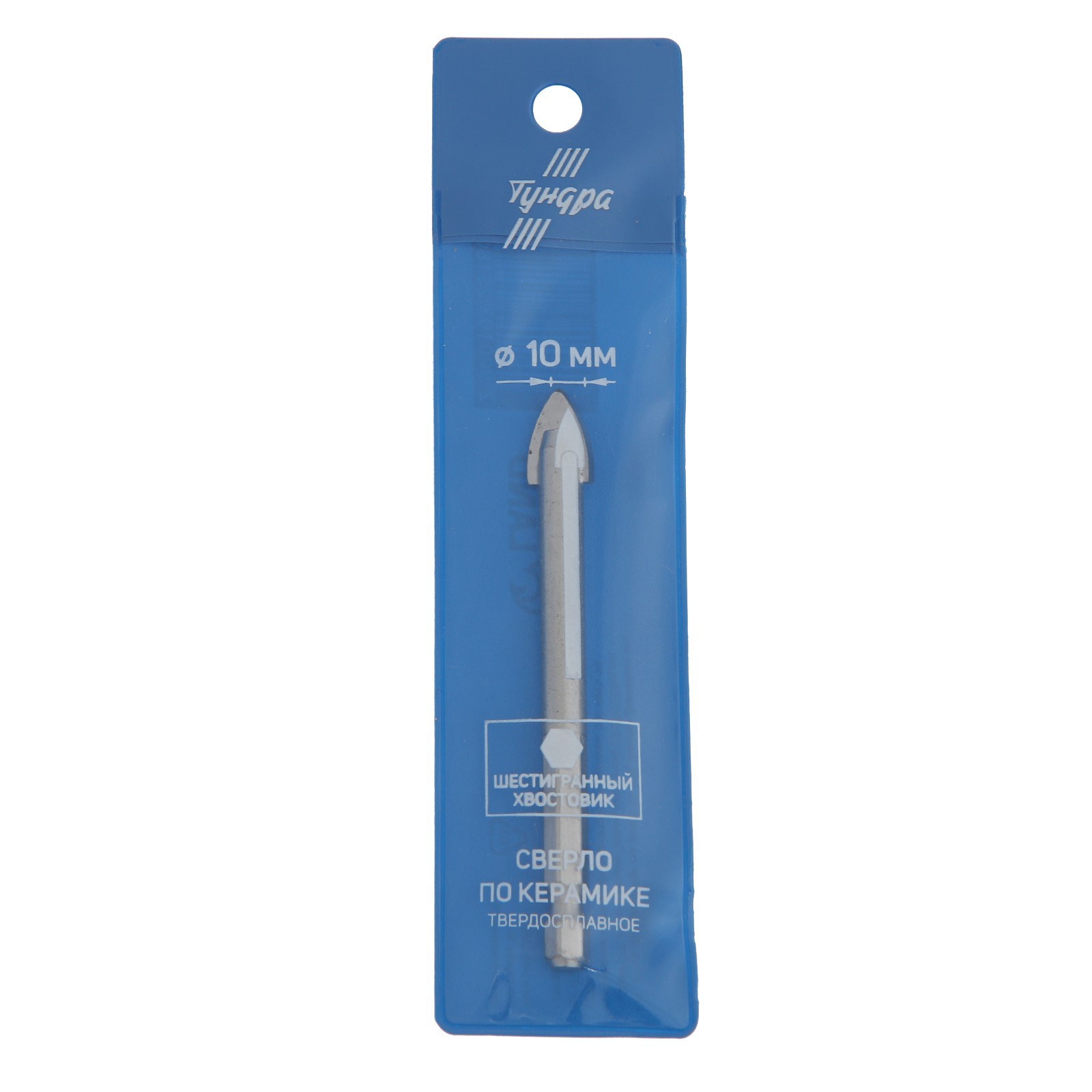 Сверло по керамике твердосплавное тундра, шестигранный хвостовик, 10 мм