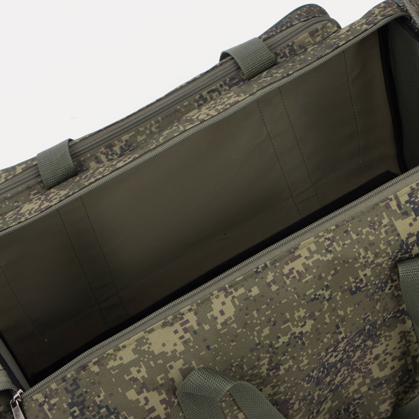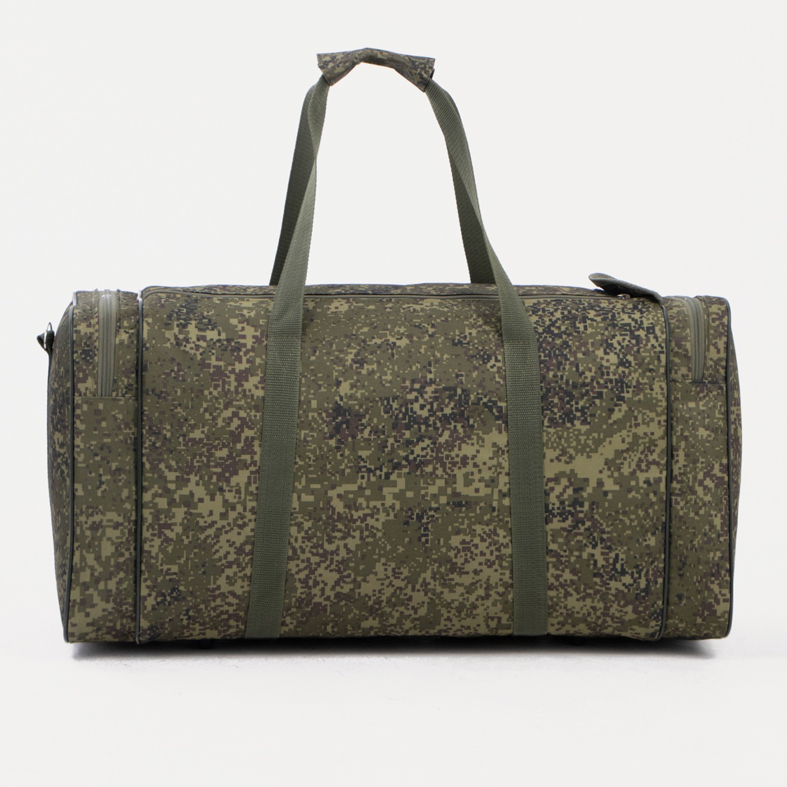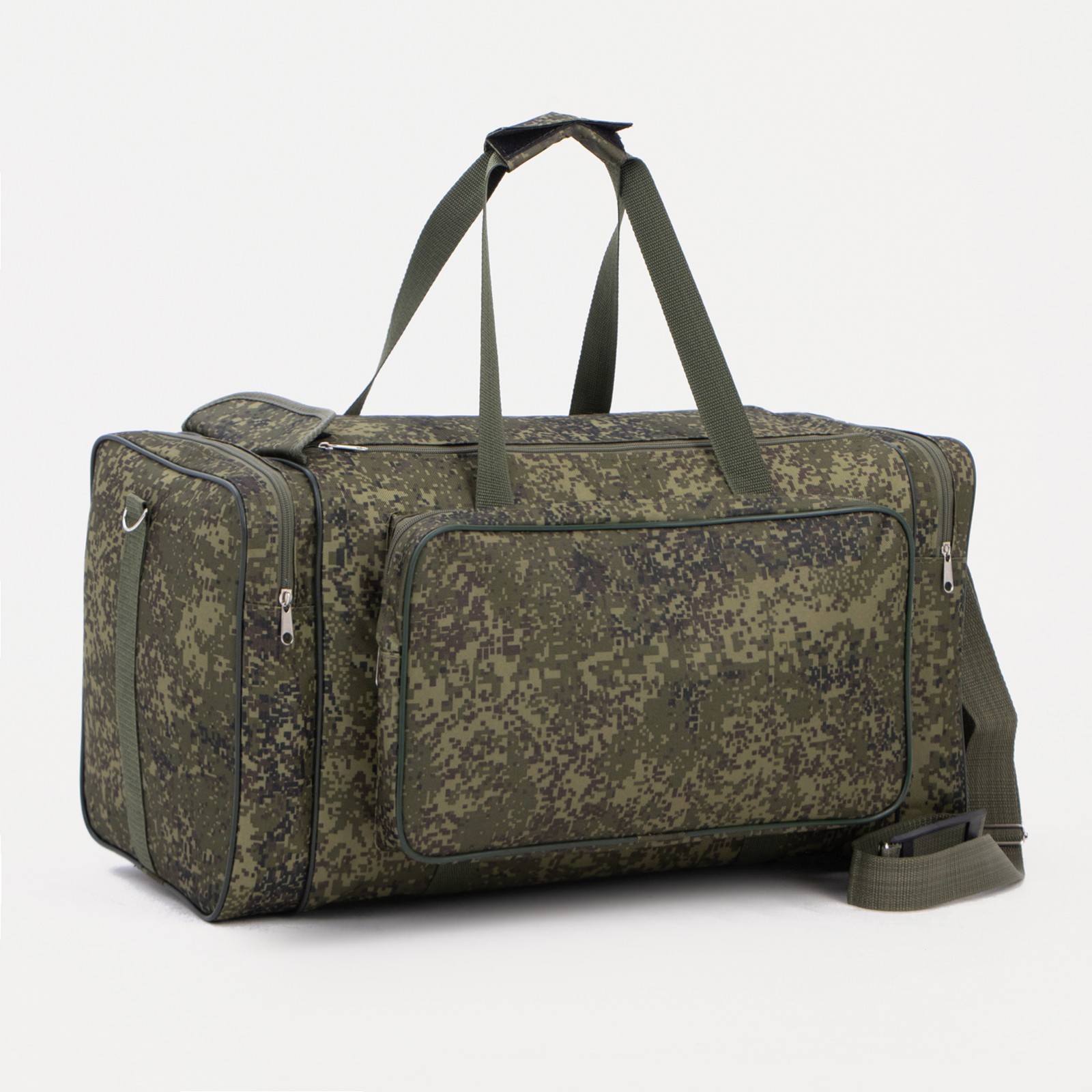 Сумка дорожная на молнии, 3 наружных кармана, длинный ремень, цвет камуфляж. Эта дорожная сумка с камуфляжным принтом — идеальный выбор для активных путешественников и тех, кто ценит практичность. Сумка выполнена из прочного текстиля, который выдерживает повседневные нагрузки и защищает ваши вещи от непогоды. Удобный длинный ремень позволяет носить сумку через плечо, не ощущая дискомфорта, а три наружных кармана обеспечат быстрый доступ к мелочам, которые всегда должны быть под рукой. Основное отделение сумки достаточно вместительное, чтобы положить всё необходимое в поездку — от одежды до личных аксессуаров. Благодаря её компактным габаритам (58 x 30 x 25 см) и легкому весу в 730 грамм, сумка удобна для ручной клади и длительных поездок. Прочность и надежность: качественный текстильный материал не только устойчив к износу, но и легко очищается от загрязнений. Комфорт в использовании: широкий ремень не скручивается и обеспечивает комфортное ношение, а ручки не режут руки даже при полной загрузке сумки. Практичный дизайн: три наружных кармана позволяют удобно хранить мелкие предметы и быстро их находить. Универсальность: подходит как для деловых поездок, так и для отдыха, независимо от продолжительности путешествия. Эта сумка сочетает в себе стиль и функциональность, делая каждую вашу поездку комфортной и приятной. Будьте уверены — с ней ваши вещи всегда под надежной защитой, а удобство использования превзойдет все ожидания. Цвет: Камуфляж Цвет: Зелёный Длина, см: 58 На колёсиках: Нет Материал: Текстиль Наличие символики РФ: Нет Модель сумки: Баул Дополнительный объём: Без увеличения  развернуть описание ▼