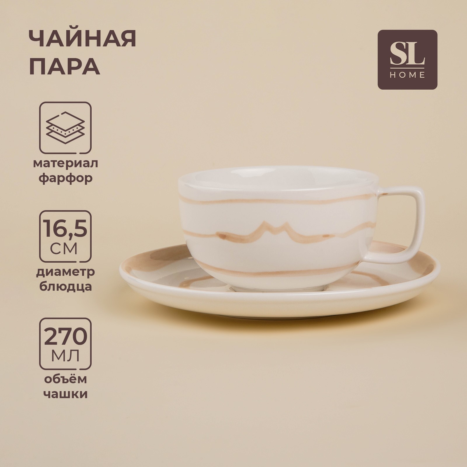 Чайная пара Sl Home "гато" чашка 270 мл, блюдце 16,5х16,5х2 см