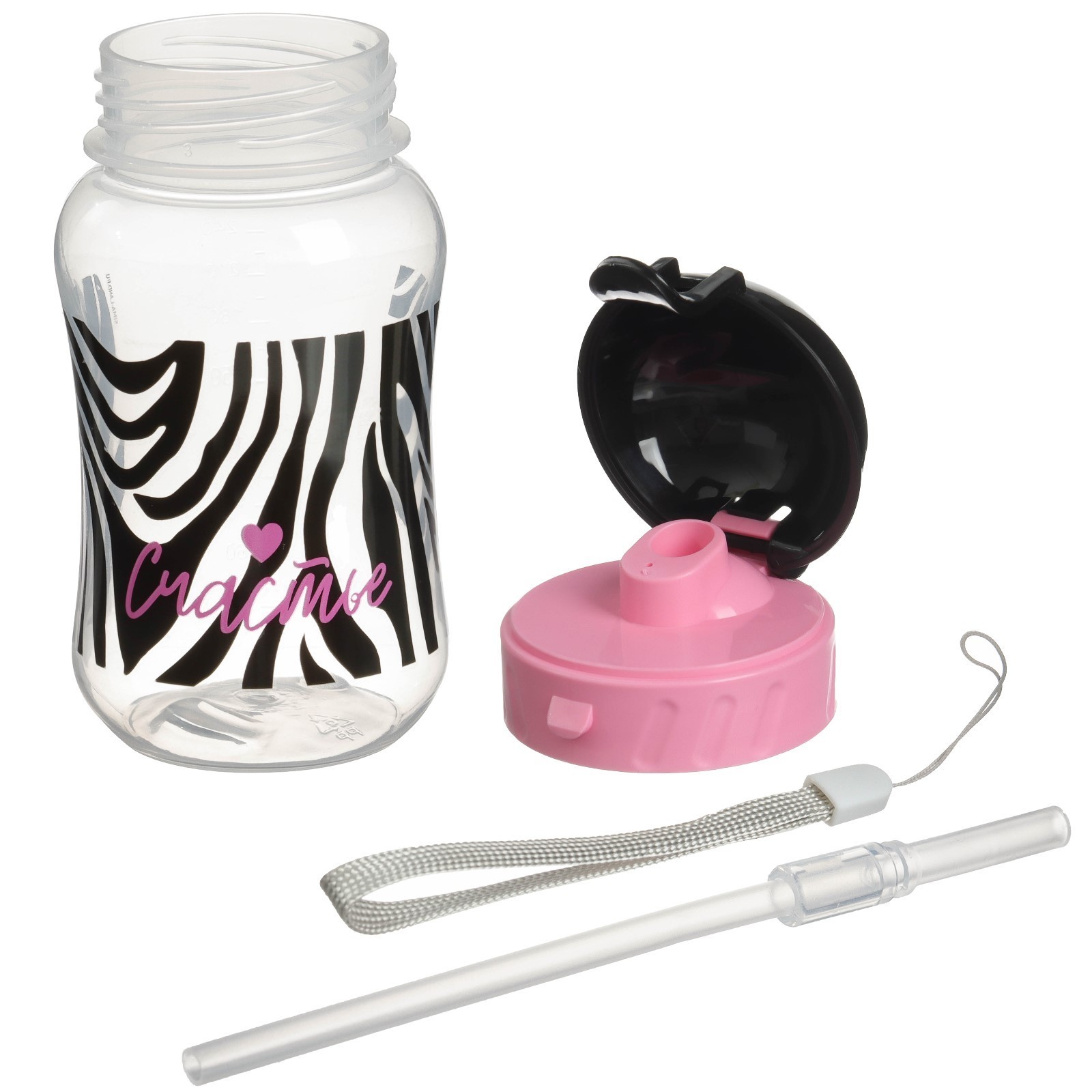 Поильник - непроливайка детский с силиконовой трубочкой «счастье» , 270 мл., цвет черный/розовый