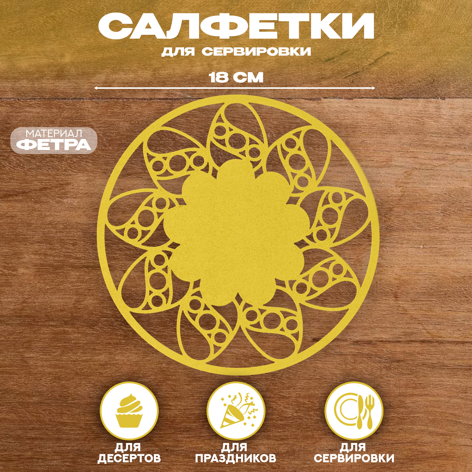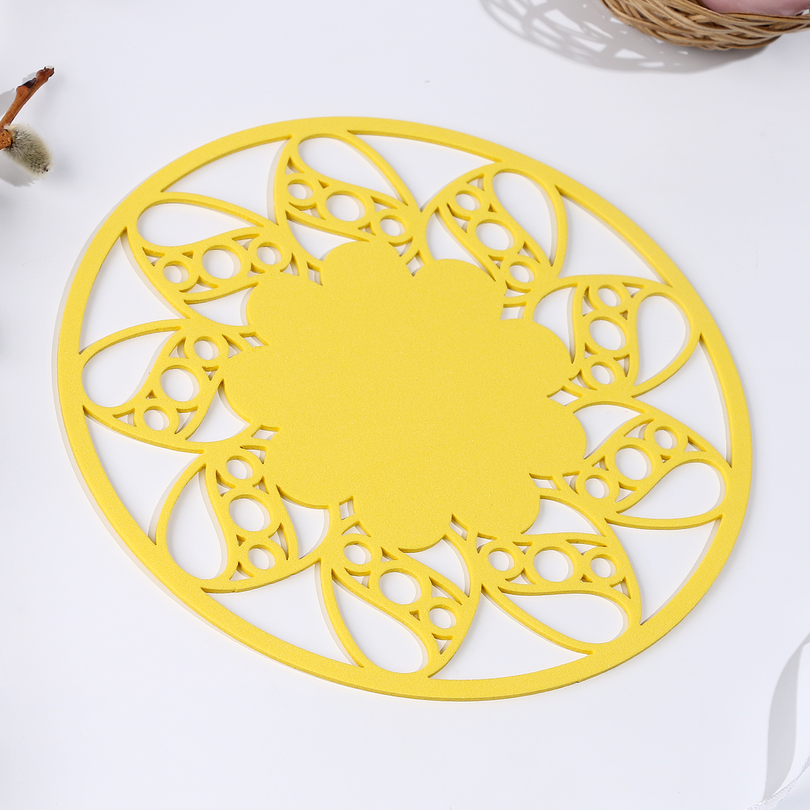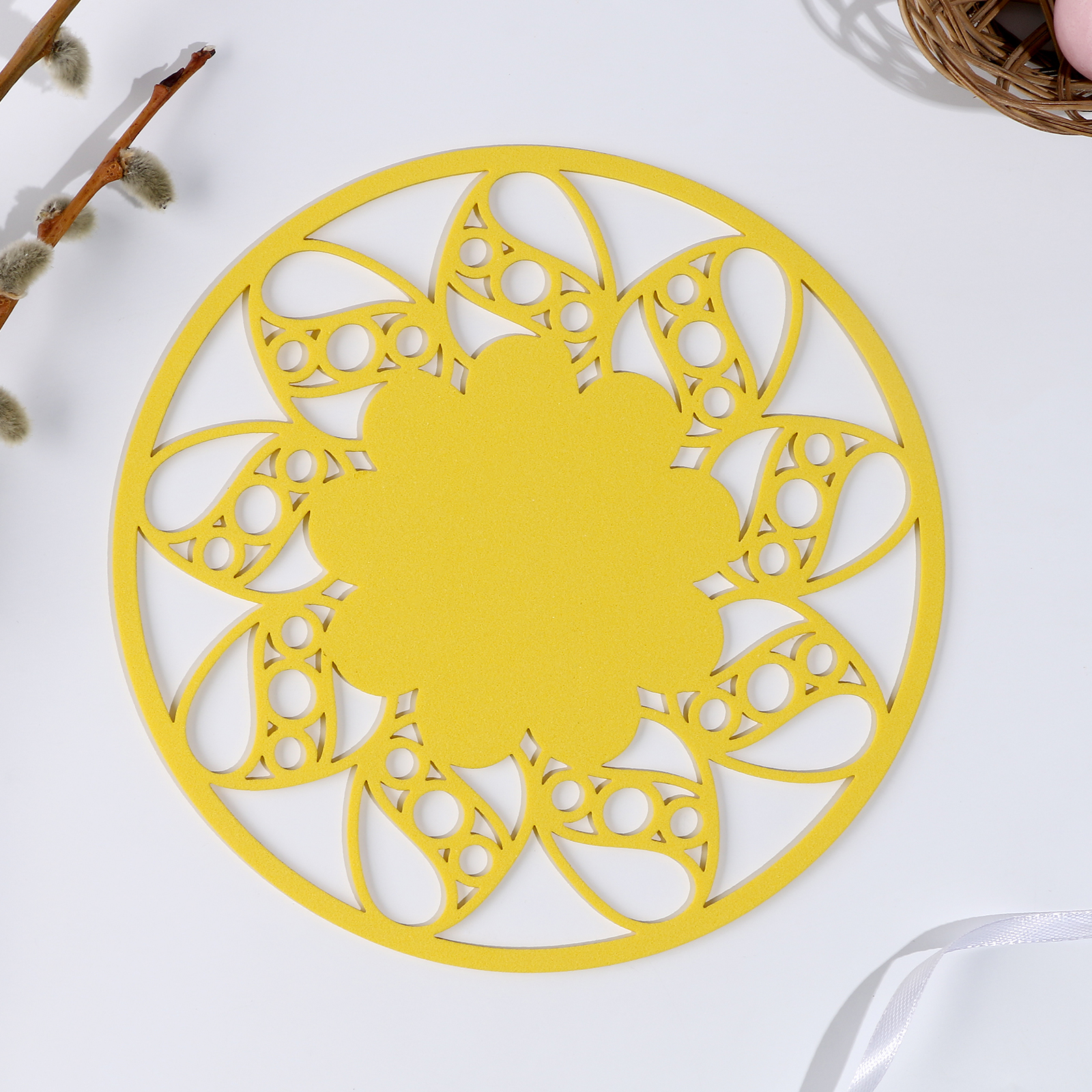 Салфетка хв "цветок", для сервировки, цвет желтый, фетр, 18 см х 18 см