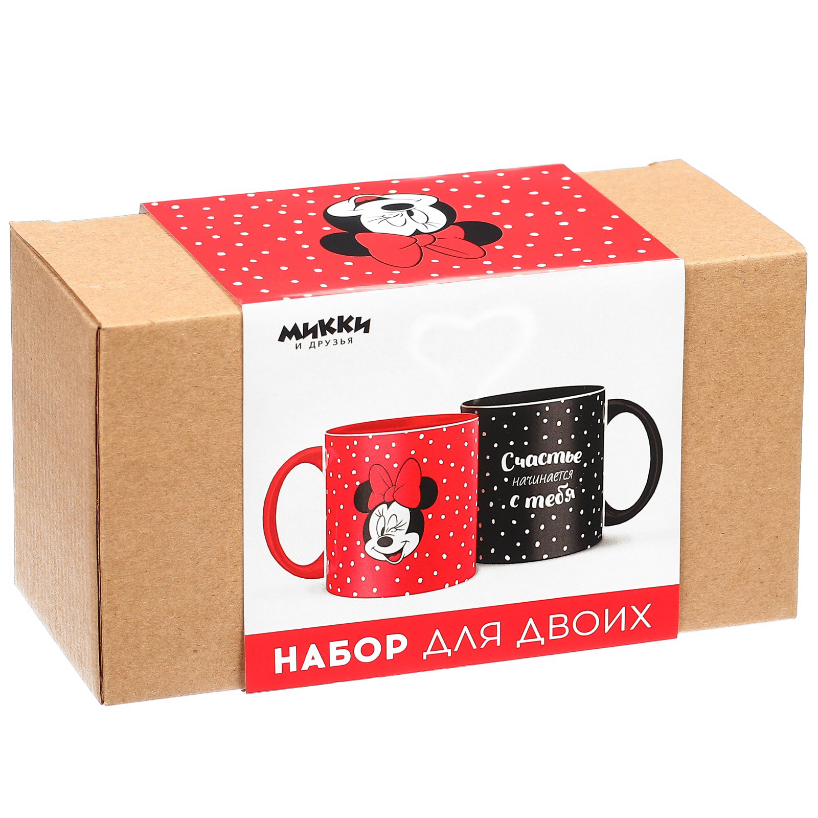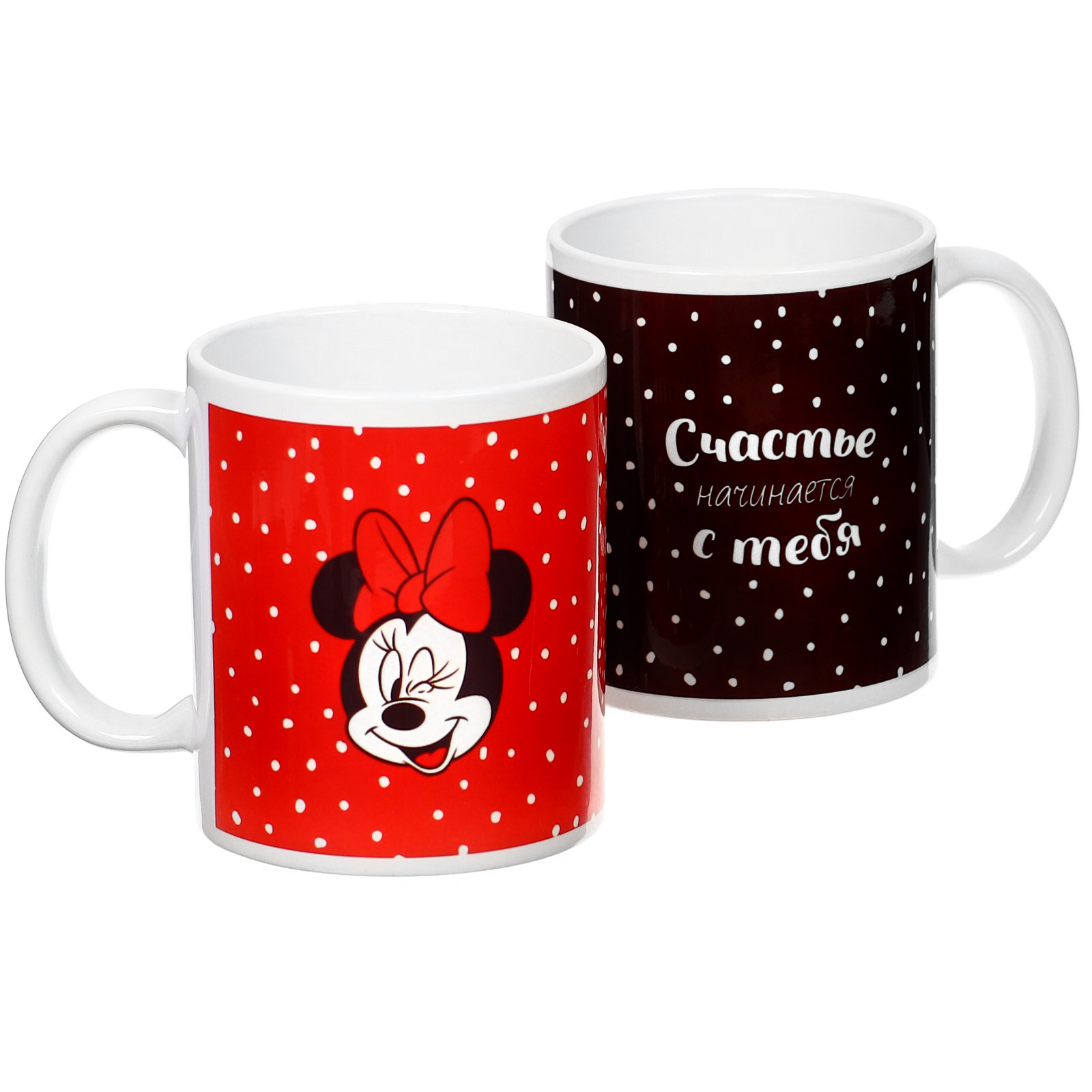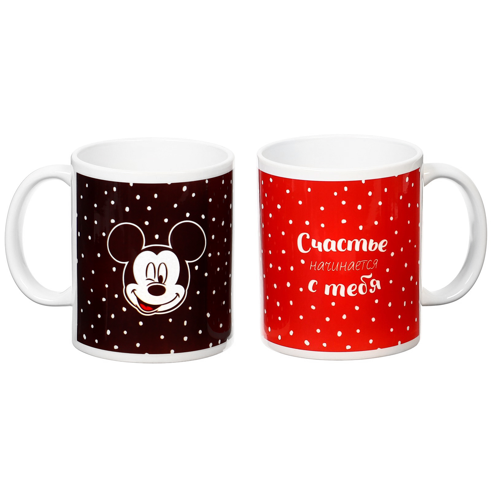 Набор парных кружек, 320 мл "счастье начинается с тебя", микки и друзья