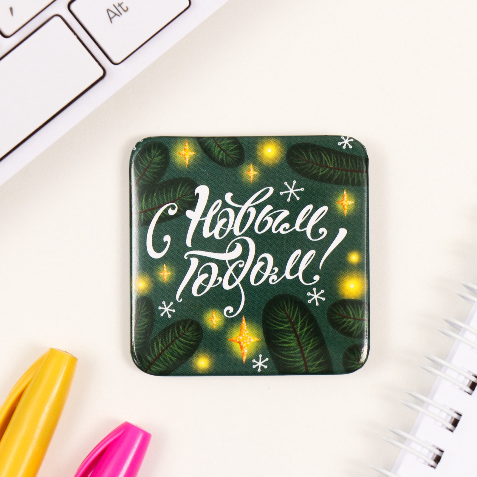 Значок новогодний закатной 50 50 мм «с новым годом!». Закатной значок - это металлическая основа круглой формы с дизайном. Значок легкий, долговечный, не боится влаги и механических повреждений, безопасно крепится к одежде и аксессуарам, что позволяет использовать его без ограничений для всех возрастных категорий. Такой значок-брошь отлично украсит одежду, рюкзак, сумку, шапку, шарф, а так же многие другие аксессуары и будет поднимать настроение каждый день! Набор:Нет|Цвет:Зелёный|Для кого:Унисекс|Длина, см:5|Символ года:Нет|Тематика праздника:Универсальная тематика|Тематика праздника:Новый год|Адресат:Без адресата|Материал:Металл|Цвет фурнитуры:Серебряный|Вставка/Подвеска:Без вставок|Тематика:Новый год|Стиль:Ар-деко|Страна:Китай  развернуть описание ▼