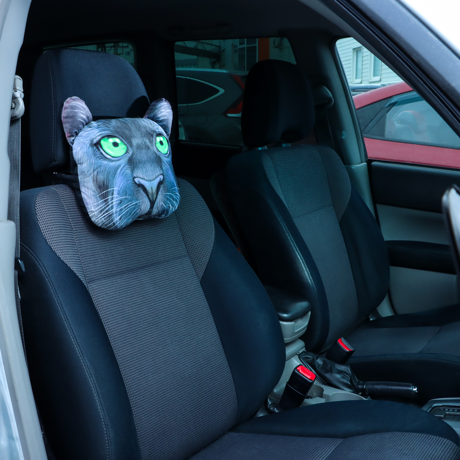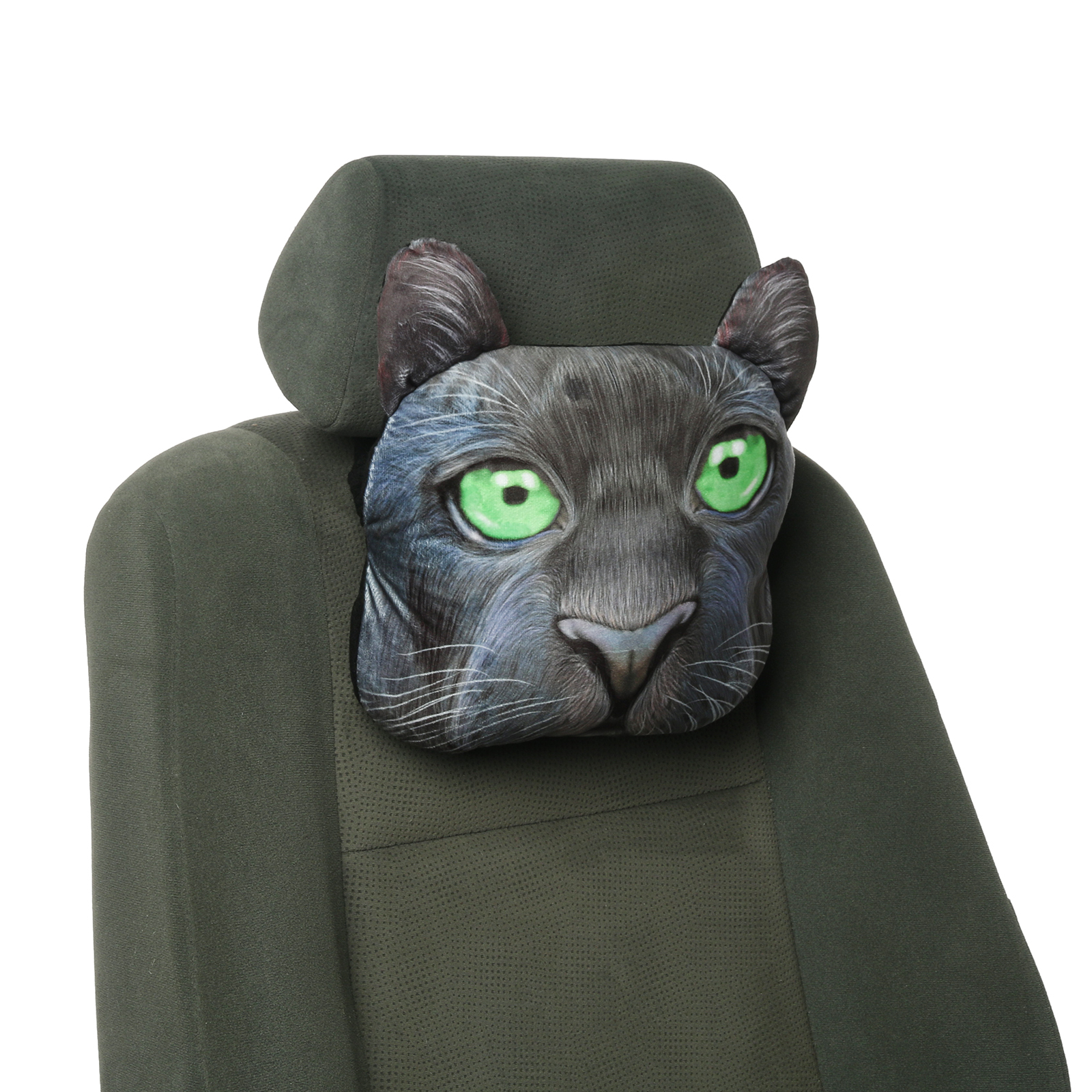 Подушка на подголовник матех animals line, пантера, 30 х 25 х 10 см, черный, зеленый. Подушка на подголовник в виде пантеры - это забавный и функциональный аксессуар для автомобиля. Размеры подушки составляют 30x25x10 см, а крепится она на резинке к подголовнику сиденья. Изготовлена подушка из качественных и мягких материалов, что обеспечивает комфорт во время длительных поездок. Наполнитель делает подушку упругой и долговечной. Благодаря этому, она сохраняет свою форму и не теряет своих свойств даже после многократных стирок. Дизайн подушки выполнен в виде милой пантеры, что добавляет уюта и оригинальности интерьеру автомобиля. Такой аксессуар обязательно понравится как взрослым, так и детям. Резинка для крепления подушки к подголовнику позволяет надежно зафиксировать ее на месте, предотвращая скольжение и смещение во время движения автомобиля. Это обеспечивает безопасность и комфорт во время поездки. Цвет: Серый Материал: Текстиль Температурное ограничение: Нет Назначение: Для подголовника  развернуть описание ▼
