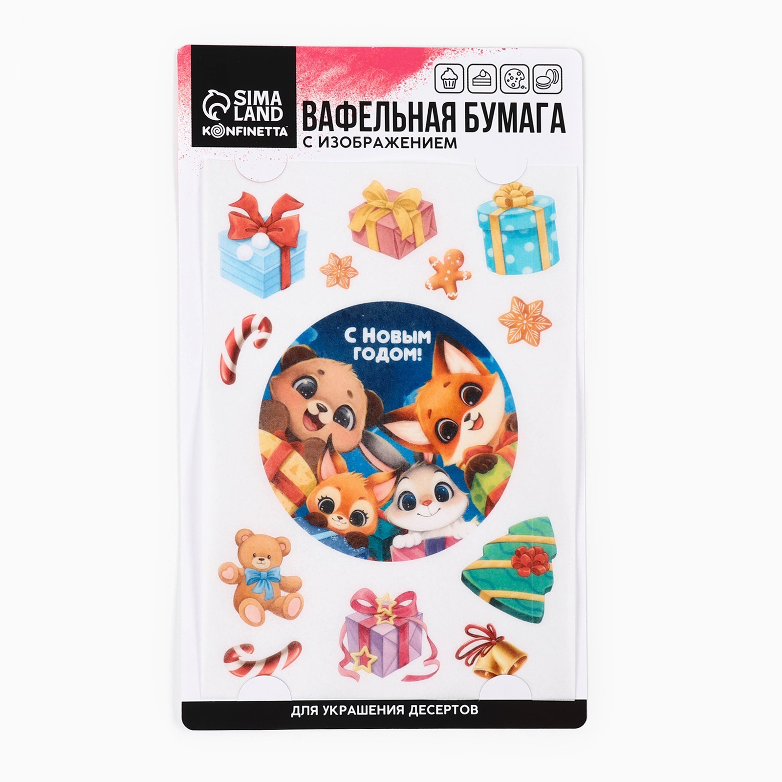 Вафельные картинки съедобные «с новым годом» для декора тортов и капкейков, 1 лист. При оформление заказа, просим запрашивать актуальные сроки годности у менеджераСостав: картофельный крахмал, вода, оливковое масло, мальтодекстрин, красители (в зависимости от цвета): E151, E110, E104, E133, E122, E124, E102. Пищевая ценность на 100 г: белки – 0 г, углеводы – 70,4 г, жиры – 3,2 г. Энергетическая ценность на 100 г: 1317 кДж / 314 ккал. Условия хранения: в сухом отапливаемом помещении при температуре от +12 до +20 °C. Срок годности: 24 мес. Количество: 1 шт. Тематика праздника:Новый год|Страна:Турция  развернуть описание ▼