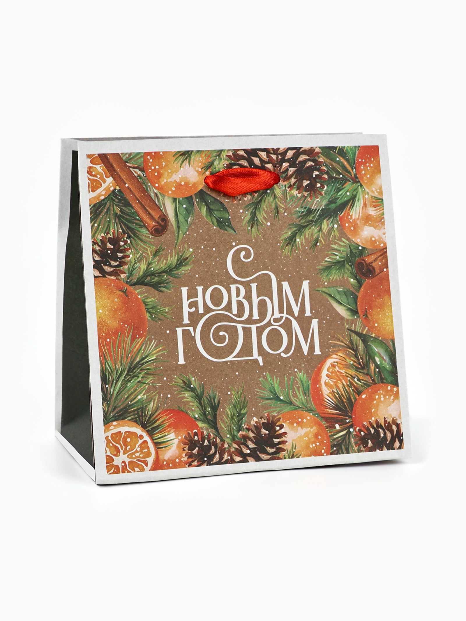 Пакет подарочный новогодний крафтовый квадратный «с новым годом», 14 х 14 х 9 см. Цвет:Зелёный|Для кого:Унисекс|Плотность, г/м :150|Тематика:Новогодняя|Символ года:Нет|Тематика праздника:Новый год|Вид ручки:Ручка-лента|Страна:Китай