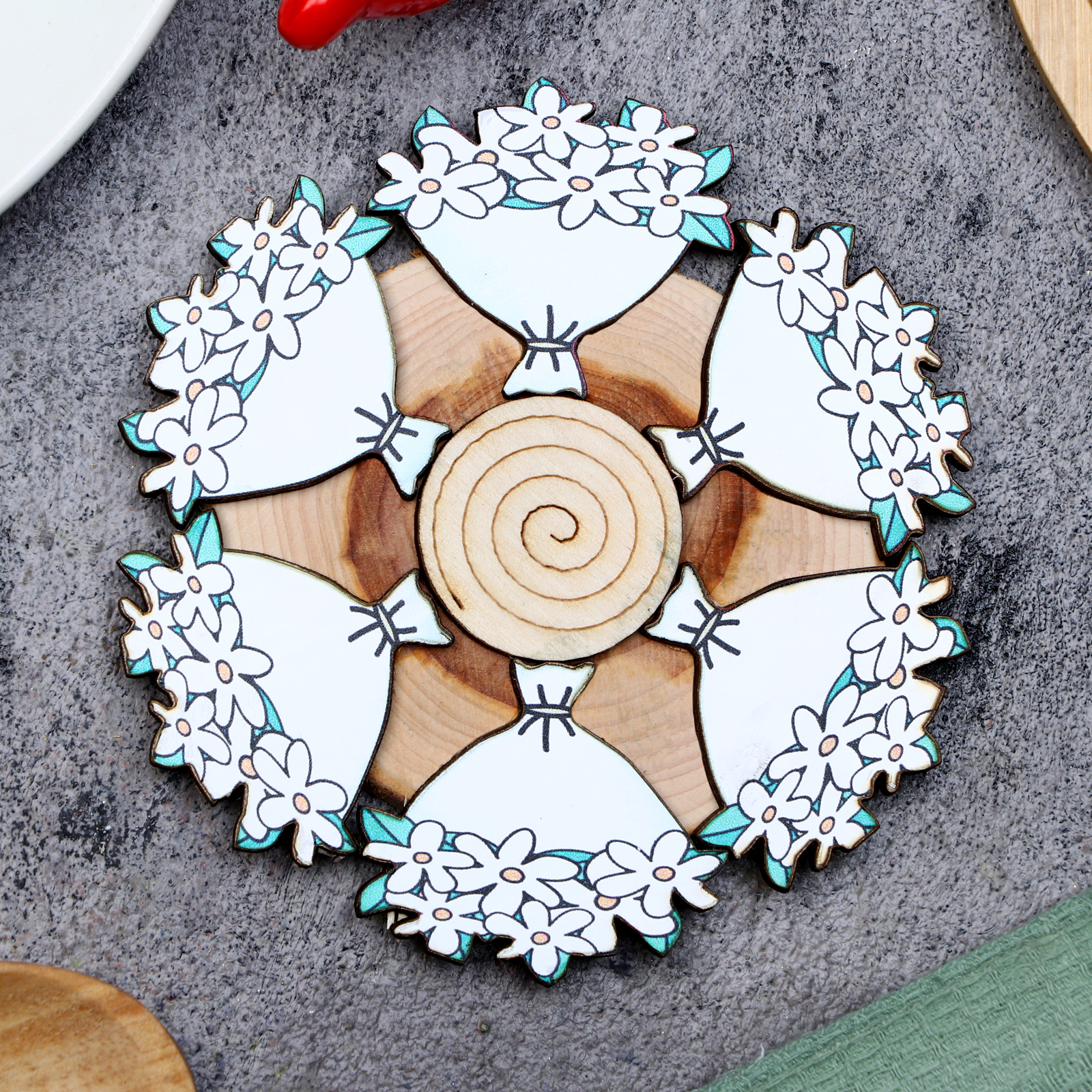 Подставка под горячее «букет ромашек», D=12 см, можжевельник