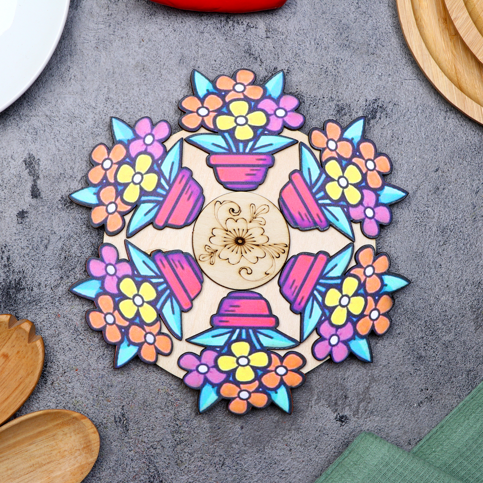 Подставка под горячее "цветочный горшок", D=20 см, можжевельник